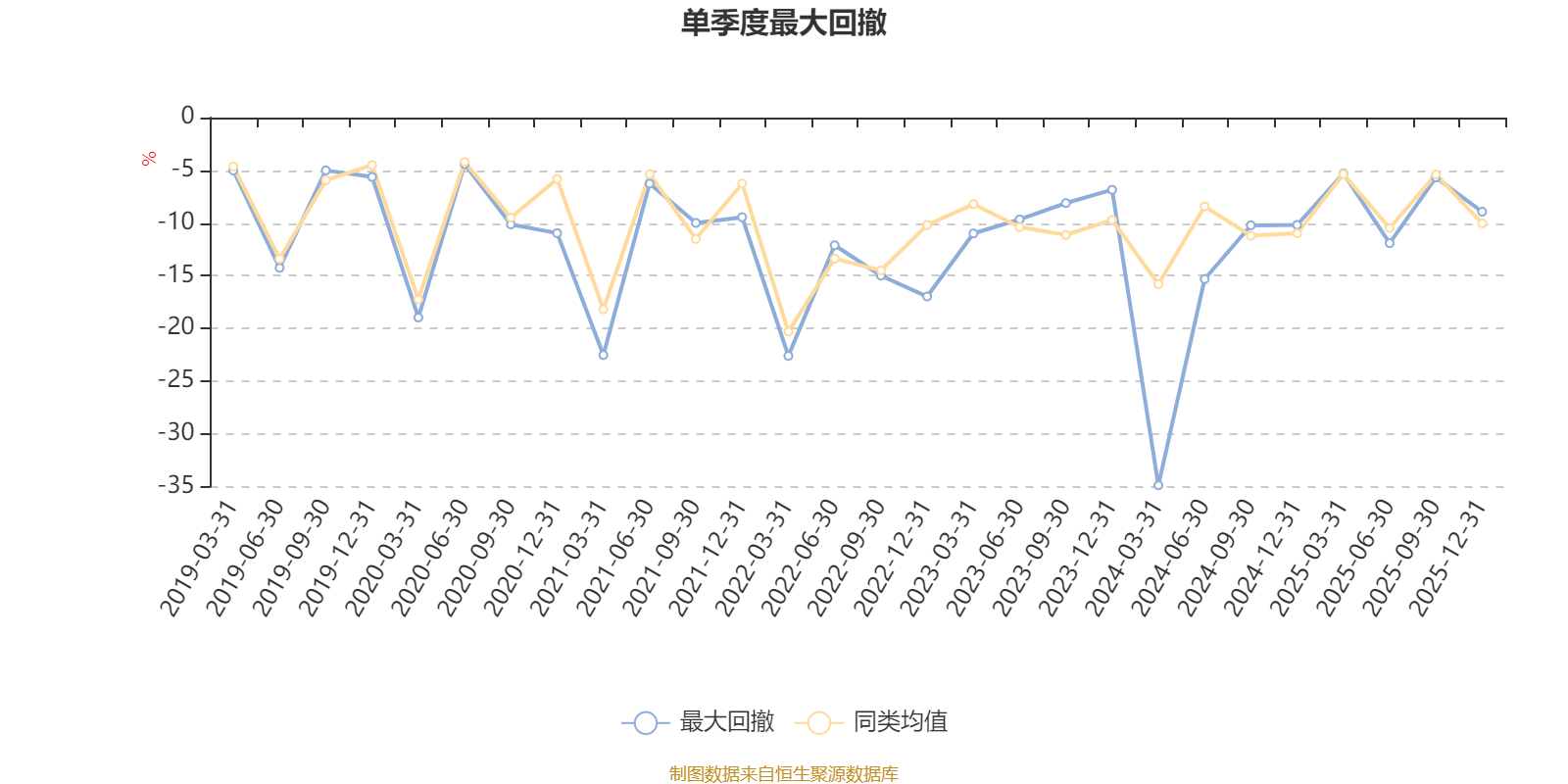 通过所选区间该基金净值增长率分位图,可以观察该基金与同类基金业绩比较情况。图为坐标原点到区间内某时点的净值增长率在同类基金中的分位数。