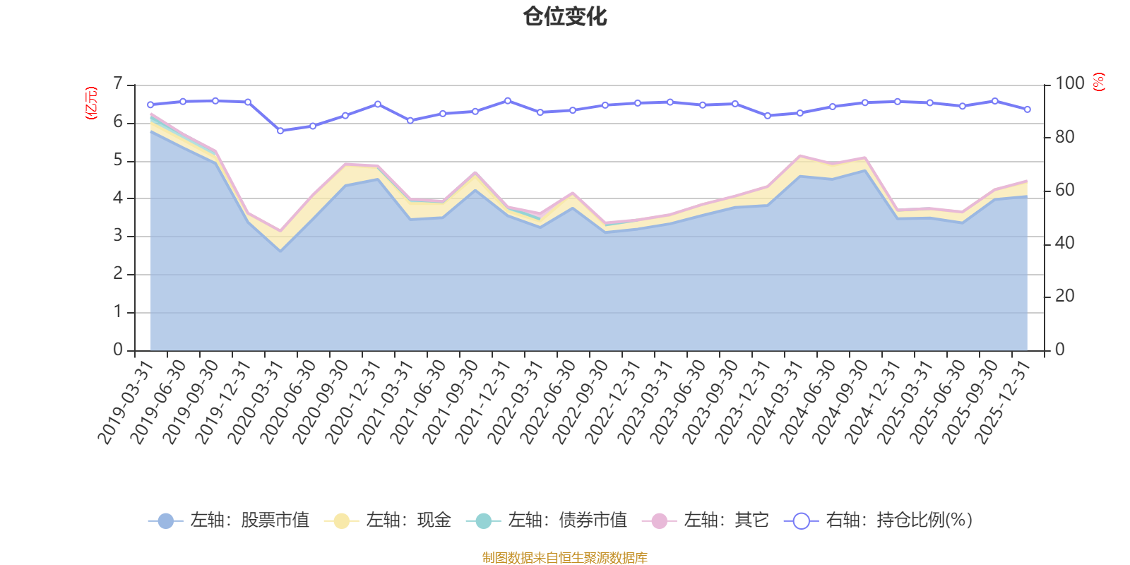 据定期报告数据统计,近三年平均股票仓位为92.08%,同类平均为72.57%。2021年末基金达到93.99%的最高仓位,2020年一季度末最低,为82.68%。