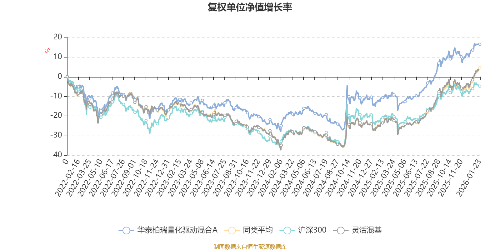 截至1月23日,华泰柏瑞量化驱动混合A近三个月复权单位净值增长率为5.13%,位于同类可比基金873/1286;近半年复权单位净值增长率为20.30%,位于同类可比基金704/1286;近一年复权单位净值增长率为33.09%,位于同类可比基金666/1286;近三年复权单位净值增长率为31.06%,位于同类可比基金385/1286。