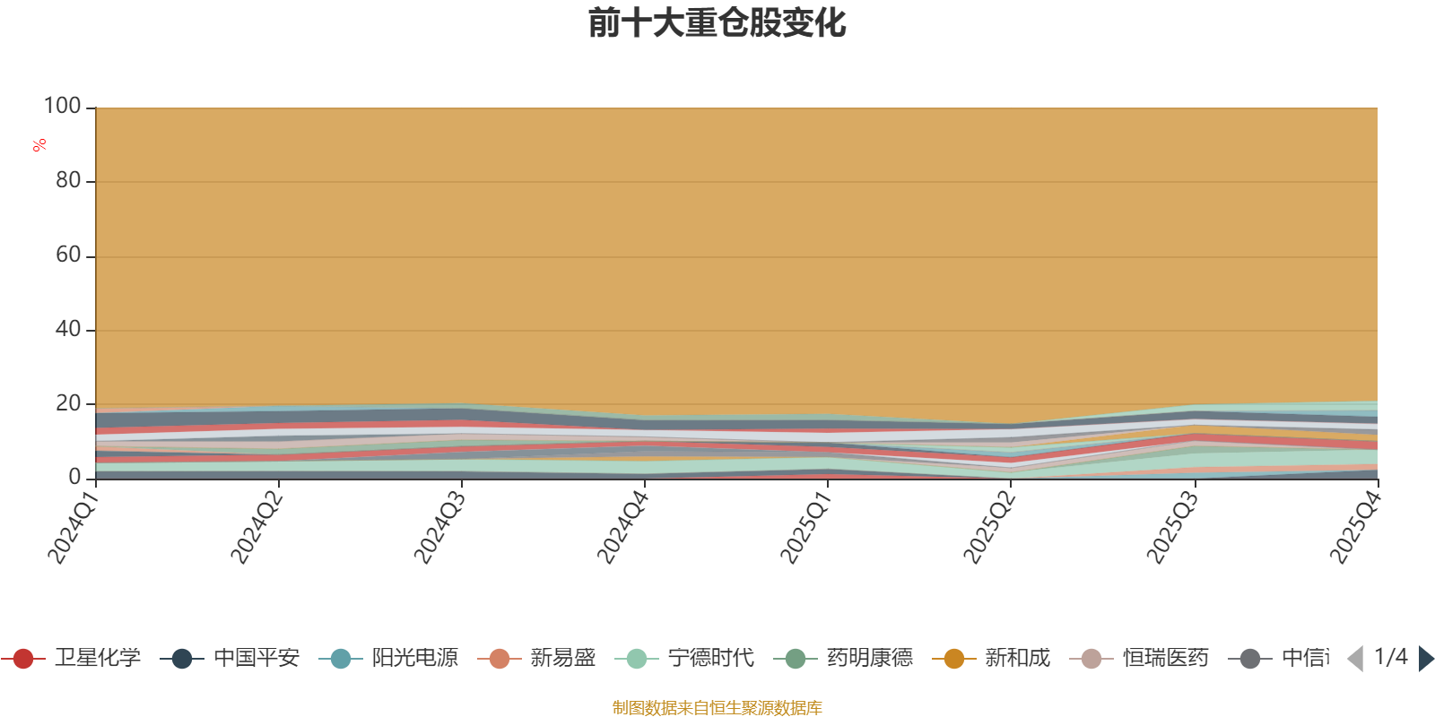 截至2025年四季度末,基金十大重仓股分别是宁德时代、中际旭创、中国平安、紫金矿业、贵州茅台、工业富联、国泰海通、新易盛、招商银行、交通银行。