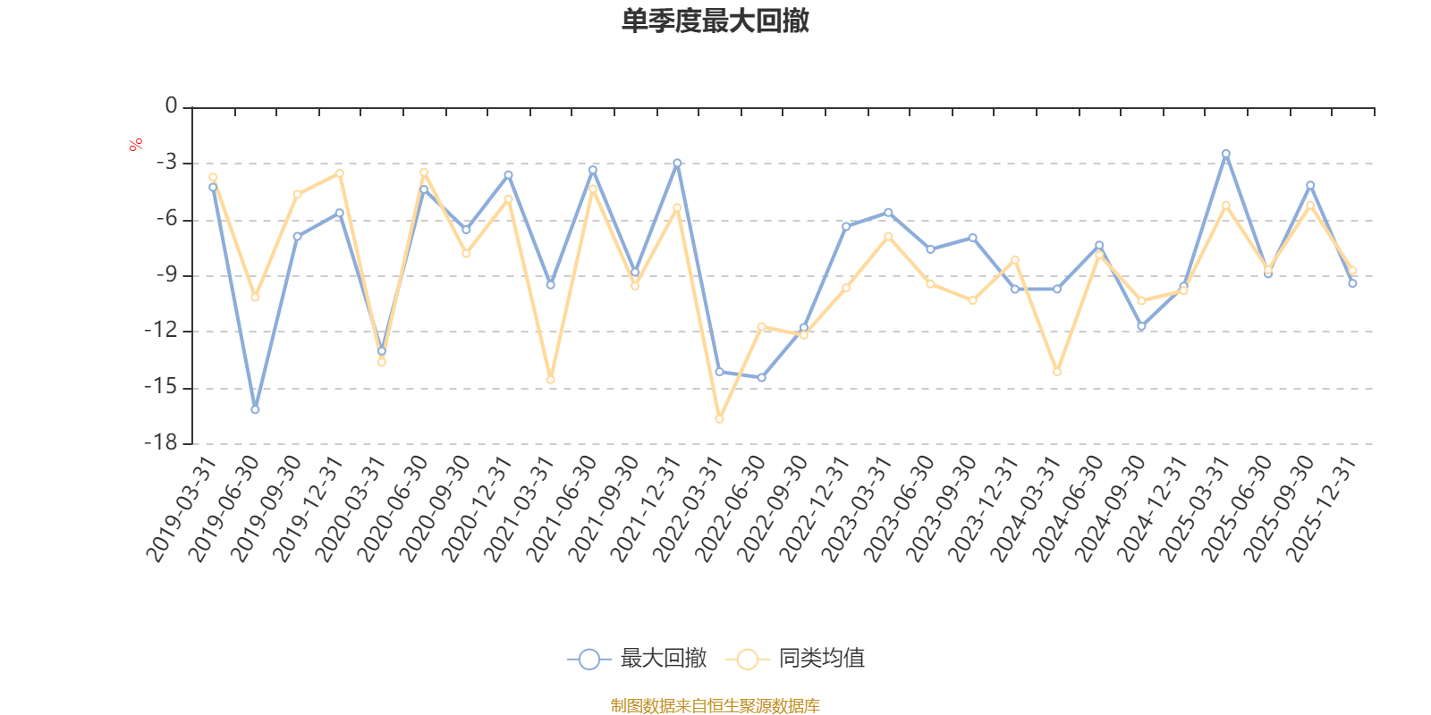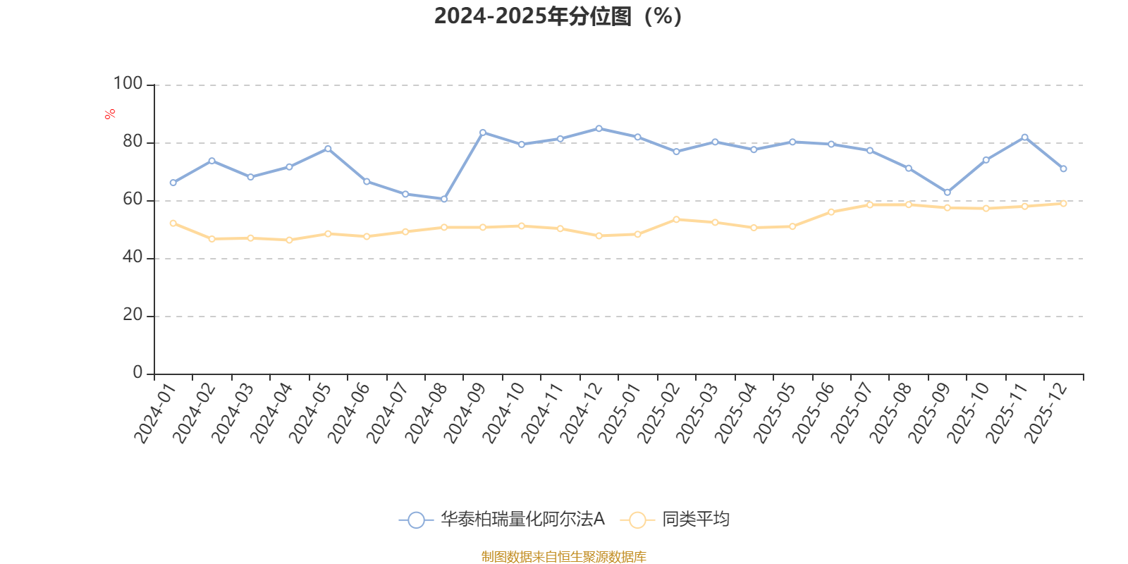 通过所选区间该基金净值增长率分位图,可以观察该基金与同类基金业绩比较情况。图为坐标原点到区间内某时点的净值增长率在同类基金中的分位数。