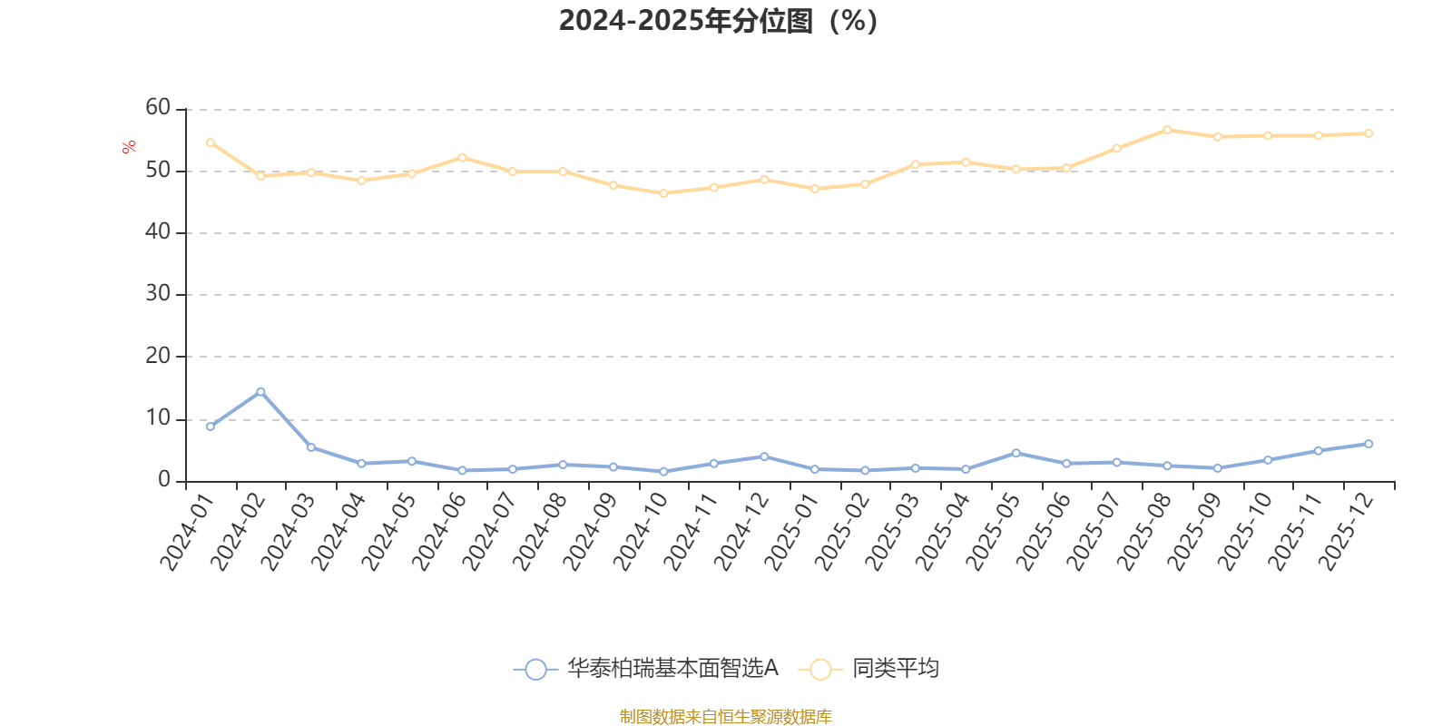 通过所选区间该基金净值增长率分位图,可以观察该基金与同类基金业绩比较情况。图为坐标原点到区间内某时点的净值增长率在同类基金中的分位数。