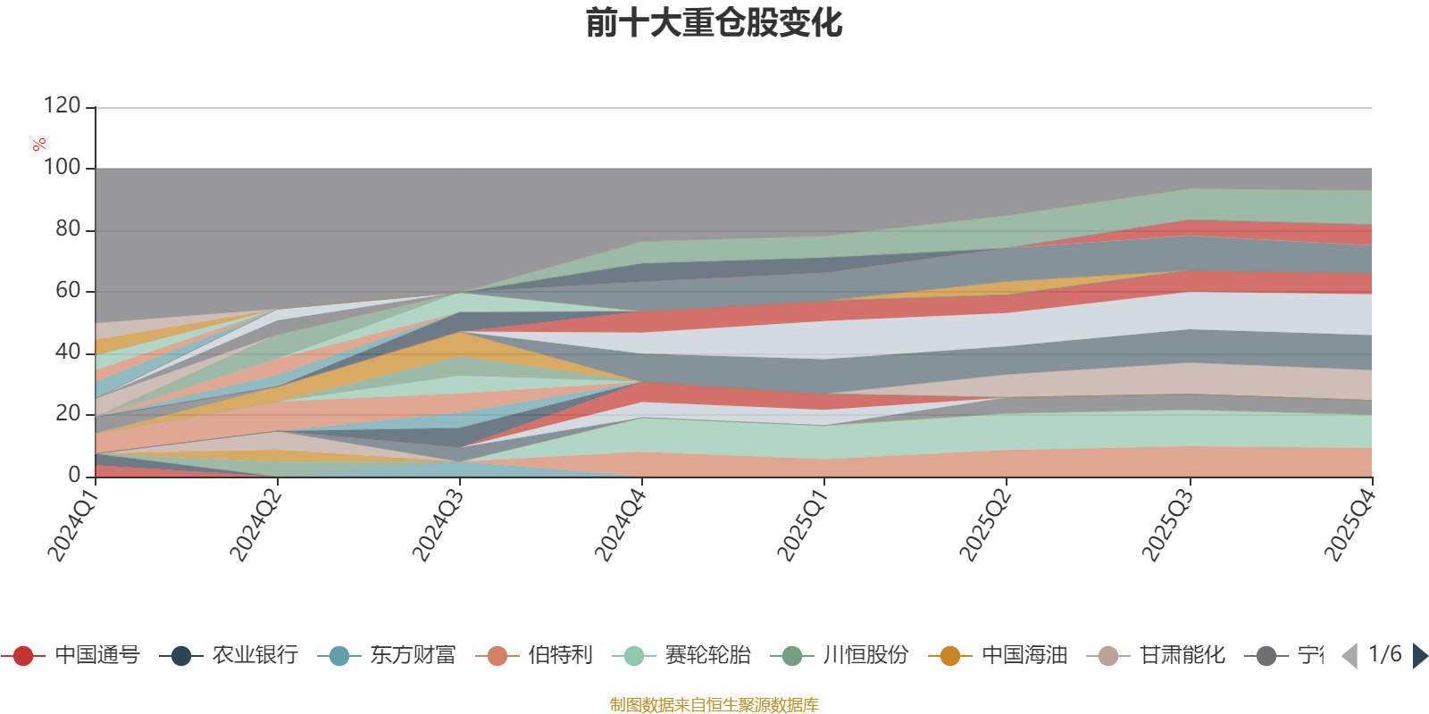 截至2025年四季度末,基金十大重仓股分别是星宇股份、继峰股份、沪光股份、赛轮轮胎、华峰铝业、伯特利、景津装备、美的集团、贵州茅台、宁德时代。