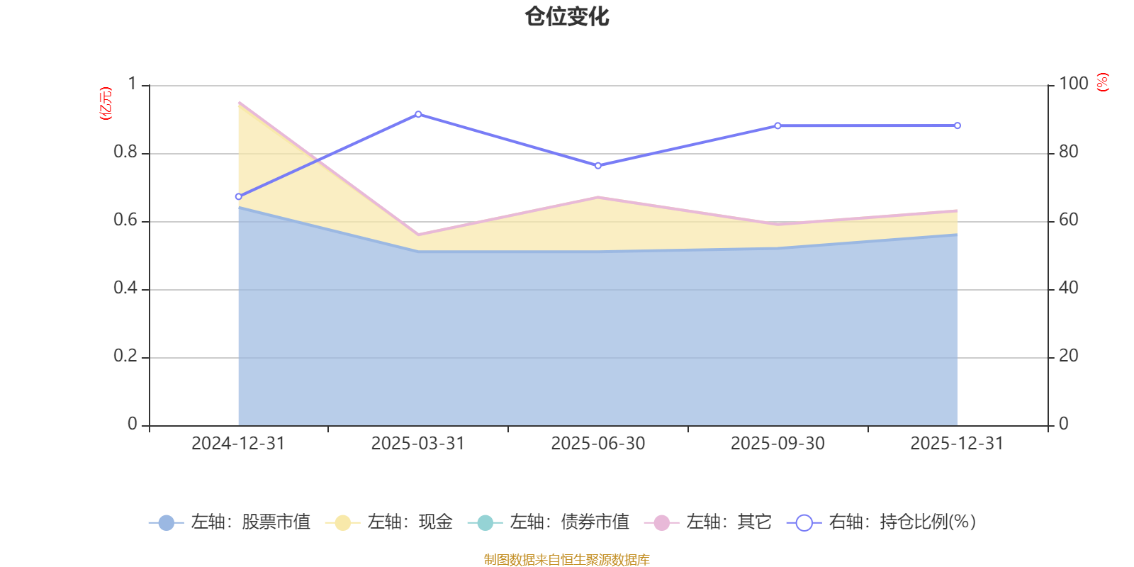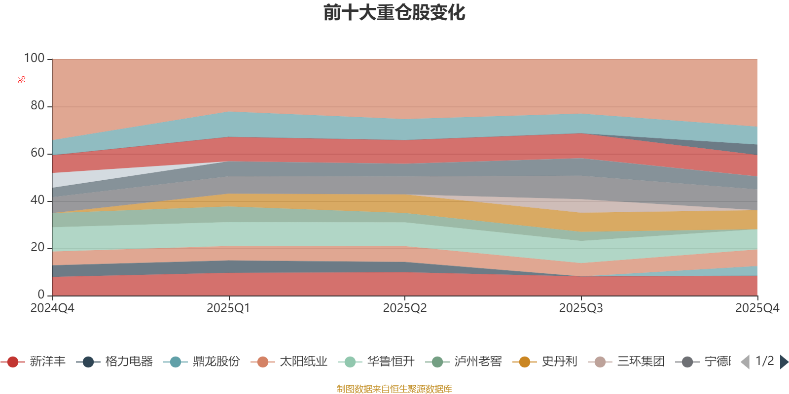 该基金持股集中度较高,且持股标的较为稳定。截至2025年四季度末,基金十大重仓股分别是腾讯控股、宁德时代、华鲁恒升、新洋丰、史丹利、贵州茅台、太阳纸业、阿里巴巴-W、扬农化工、鼎龙股份。