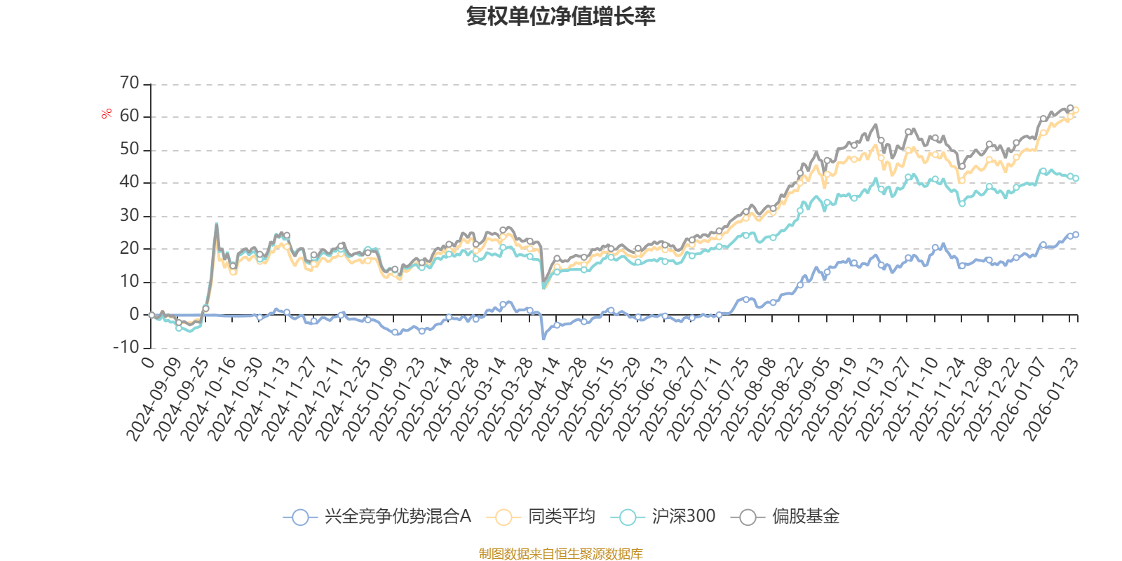 截至1月23日,兴全竞争优势混合A近三个月复权单位净值增长率为7.49%,位于同类可比基金438/689;近半年复权单位净值增长率为18.82%,位于同类可比基金443/689;近一年复权单位净值增长率为30.76%,位于同类可比基金447/674。