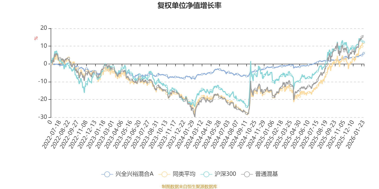 截至1月23日,兴全兴裕混合A近三个月复权单位净值增长率为3.15%,位于同类可比基金108/134;近半年复权单位净值增长率为4.29%,位于同类可比基金117/134;近一年复权单位净值增长率为7.98%,位于同类可比基金122/131;近三年复权单位净值增长率为8.91%,位于同类可比基金88/124。