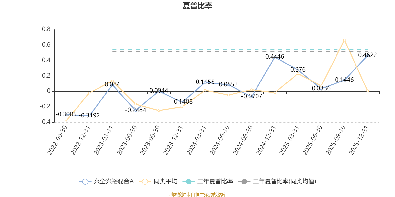 截至12月31日,基金近三年夏普比率为0.5393,位于同类可比基金61/122。