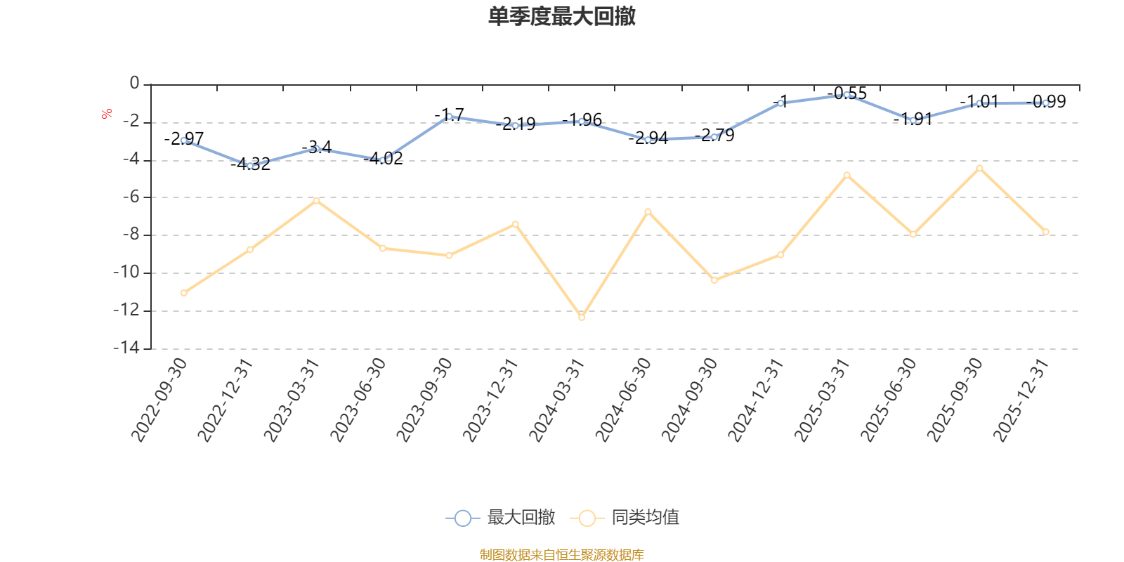 截至1月23日,基金近三年最大回撤为6.3%,同类可比基金排名0/122。单季度最大回撤出现在2022年四季度,为4.32%。