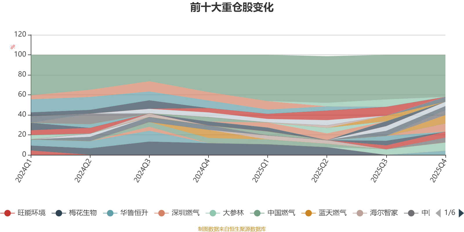 该基金持股集中度较高。截至2025年四季度末,基金十大重仓股分别是美的集团、大参林、唐山港、光大环境、天山铝业、伊利股份、中国石油化工股份、蒙牛乳业、中孚实业、华鲁恒升。
