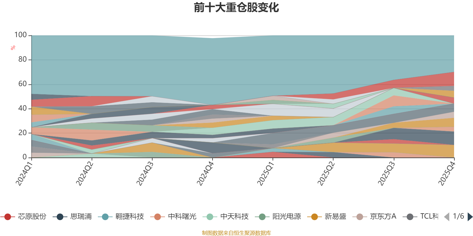 截至2025年四季度末,基金十大重仓股分别是中际旭创、寒武纪、新易盛、生益科技、阿里巴巴-W、天孚通信、源杰科技、东山精密、中科飞测、致尚科技。