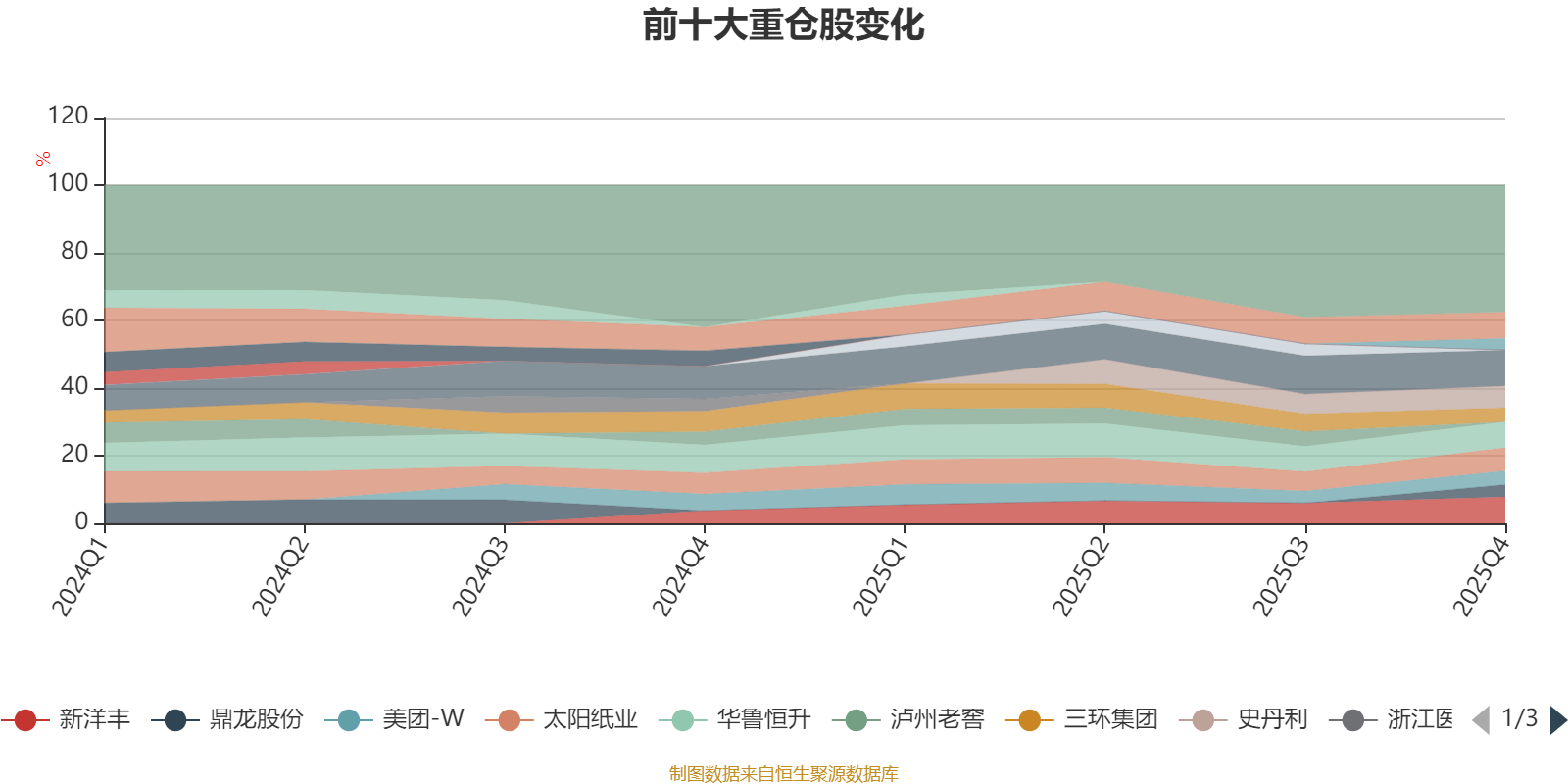该基金持股集中度较高。截至2025年四季度末,基金十大重仓股分别是宁德时代、新洋丰、贵州茅台、华鲁恒升、太阳纸业、史丹利、三环集团、美团-W、鼎龙股份、扬农化工。