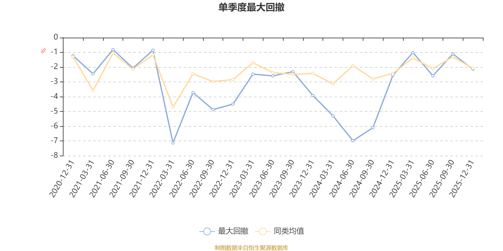 截至1月23日,基金近三年最大回撤为10.84%,同类可比基金排名435/542。单季度最大回撤出现在2022年一季度,为7.13%。