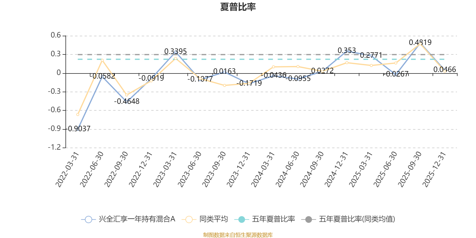 截至12月31日,基金近三年夏普比率为0.6175,位于同类可比基金303/542。