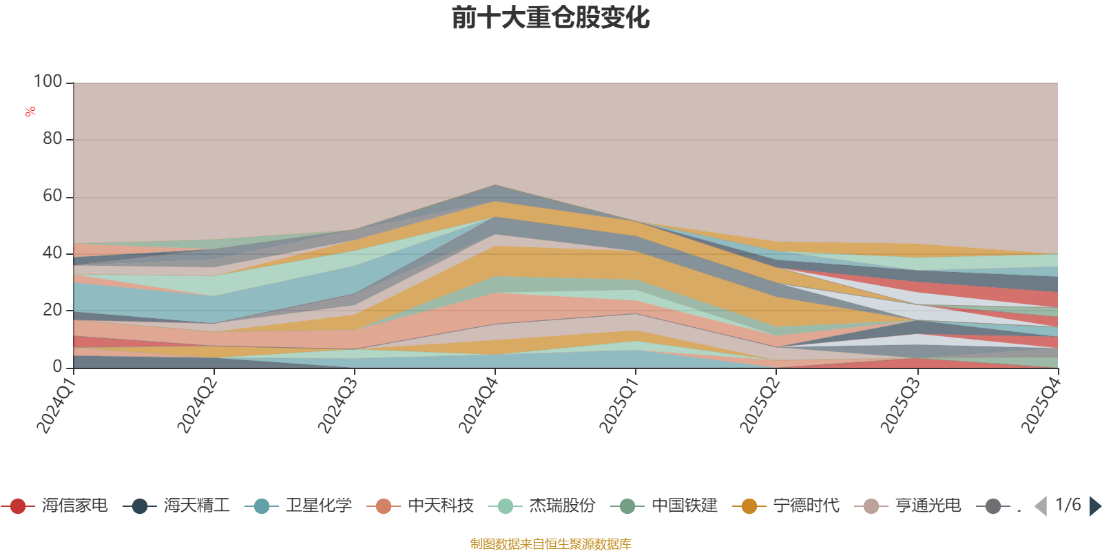截至2025年四季度末,基金十大重仓股分别是新澳股份、中联重科、华域汽车、宝丰能源、中国铁建、中国移动、福能股份、明泰铝业、上港集团、中国重汽。