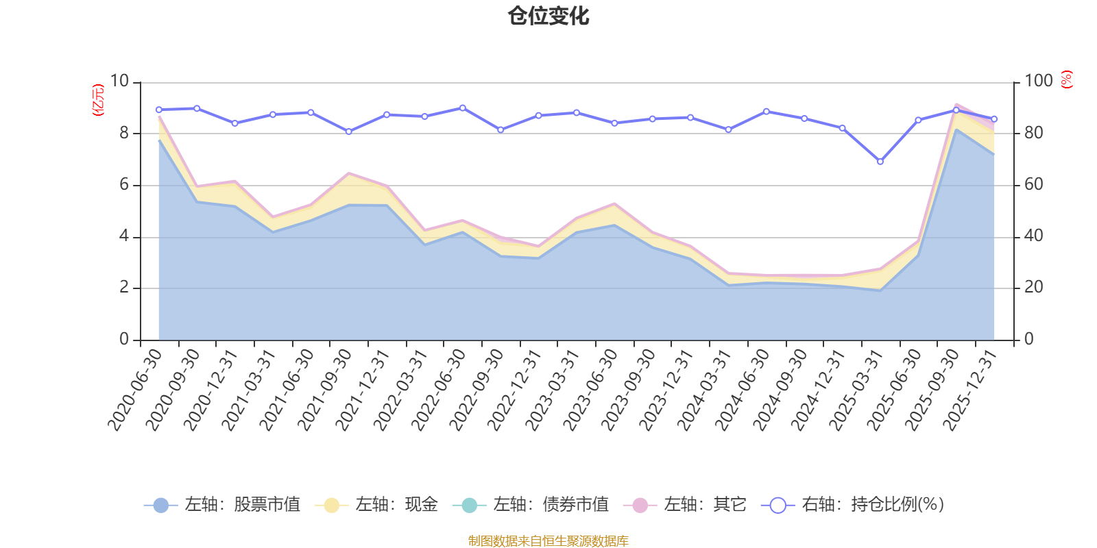 据定期报告数据统计,近三年平均股票仓位为84.36%,同类平均为86.9%。2022年上半年末基金达到90.03%的最高仓位,2025年一季度末最低,为69.23%。