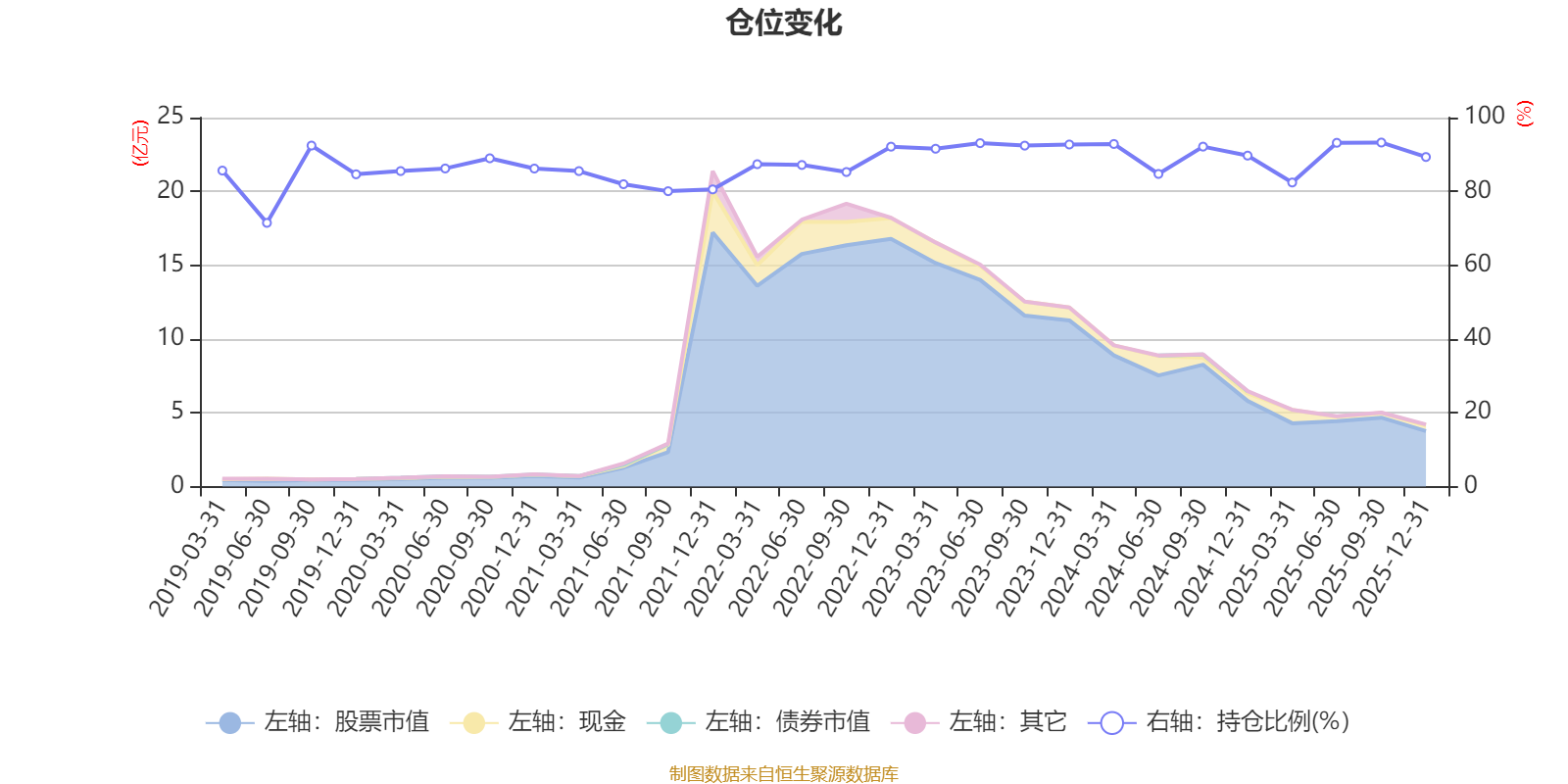 据定期报告数据统计,近三年平均股票仓位为90.61%,同类平均为72.57%。2025年三季度末基金达到93.24%的最高仓位,2019年上半年末最低,为71.47%。