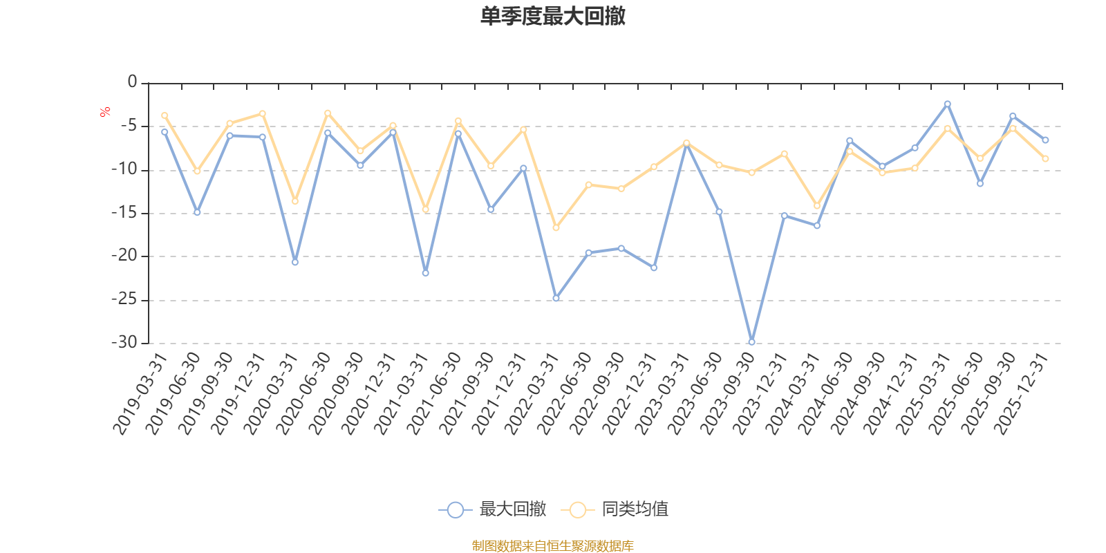 通过所选区间该基金净值增长率分位图,可以观察该基金与同类基金业绩比较情况。图为坐标原点到区间内某时点的净值增长率在同类基金中的分位数。