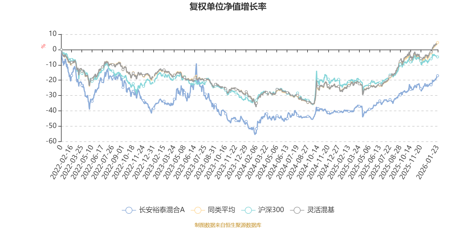 截至1月23日,长安裕泰混合A近三个月复权单位净值增长率为11.96%,位于同类可比基金519/1286;近半年复权单位净值增长率为24.08%,位于同类可比基金610/1286;近一年复权单位净值增长率为38.72%,位于同类可比基金562/1286;近三年复权单位净值增长率为24.41%,位于同类可比基金481/1286。