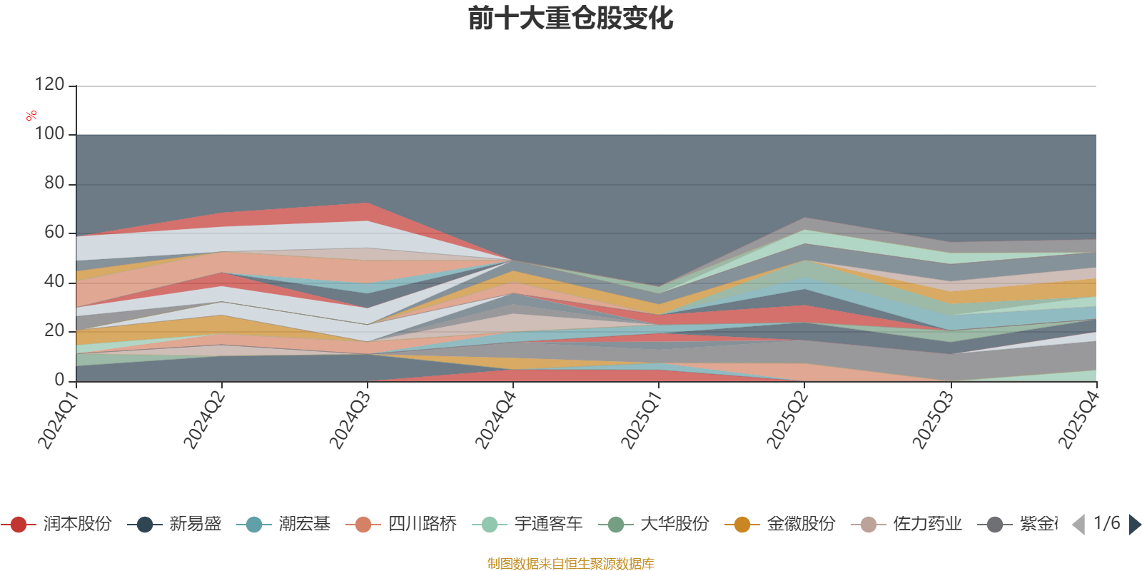 截至2025年四季度末,基金十大重仓股分别是紫金矿业、豪迈科技、福耀玻璃、隆鑫通用、纽威股份、大金重工、宇通客车、金诚信、中金黄金、神火股份。