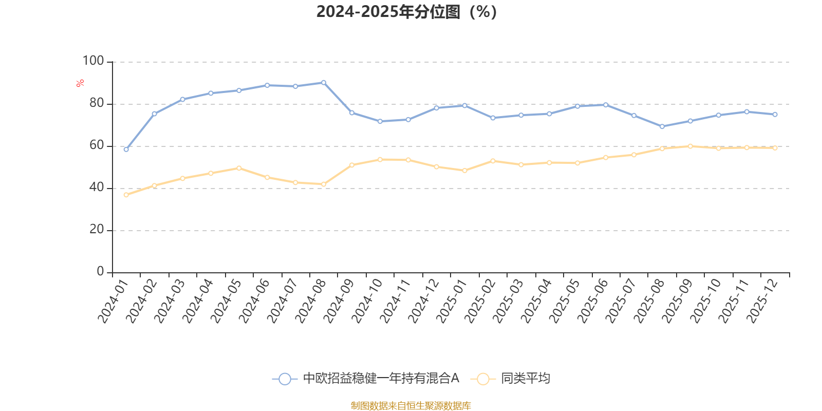 通过所选区间该基金净值增长率分位图,可以观察该基金与同类基金业绩比较情况。图为坐标原点到区间内某时点的净值增长率在同类基金中的分位数。
