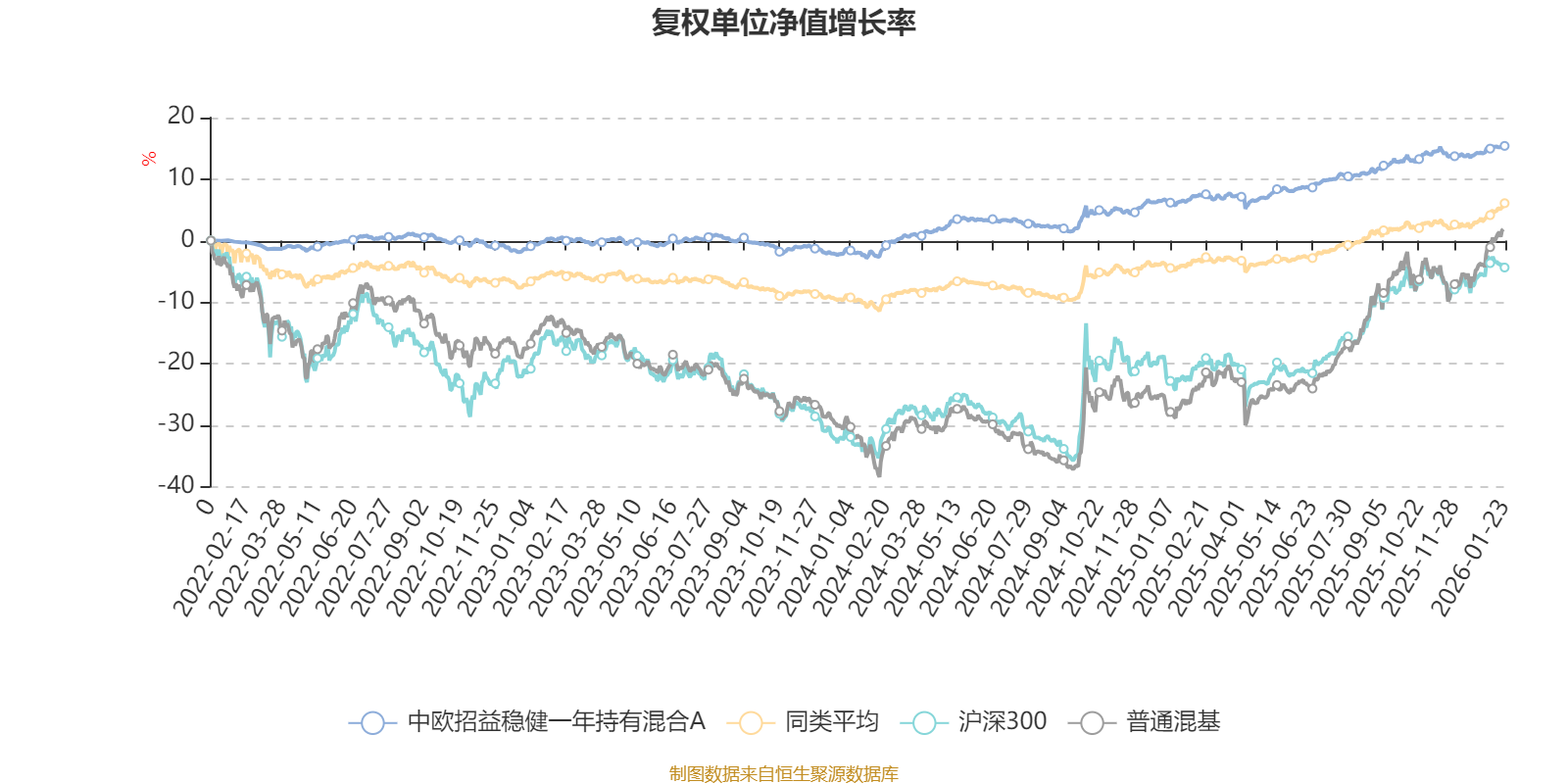 截至1月23日,中欧招益稳健一年持有混合A近三个月复权单位净值增长率为1.71%,位于同类可比基金401/629;近半年复权单位净值增长率为4.13%,位于同类可比基金350/629;近一年复权单位净值增长率为8.57%,位于同类可比基金282/626;近三年复权单位净值增长率为15.20%,位于同类可比基金185/564。