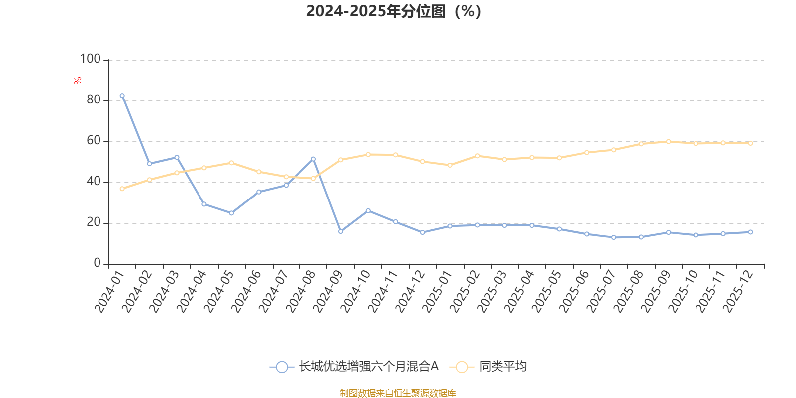 通过所选区间该基金净值增长率分位图,可以观察该基金与同类基金业绩比较情况。图为坐标原点到区间内某时点的净值增长率在同类基金中的分位数。