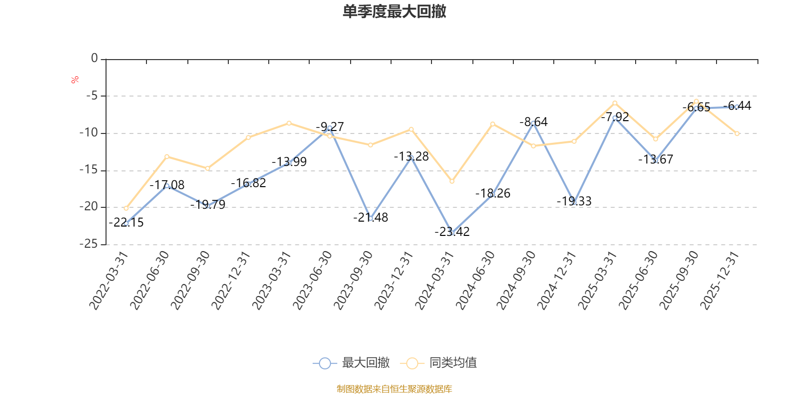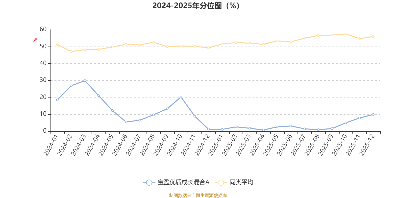 通过所选区间该基金净值增长率分位图,可以观察该基金与同类基金业绩比较情况。图为坐标原点到区间内某时点的净值增长率在同类基金中的分位数。