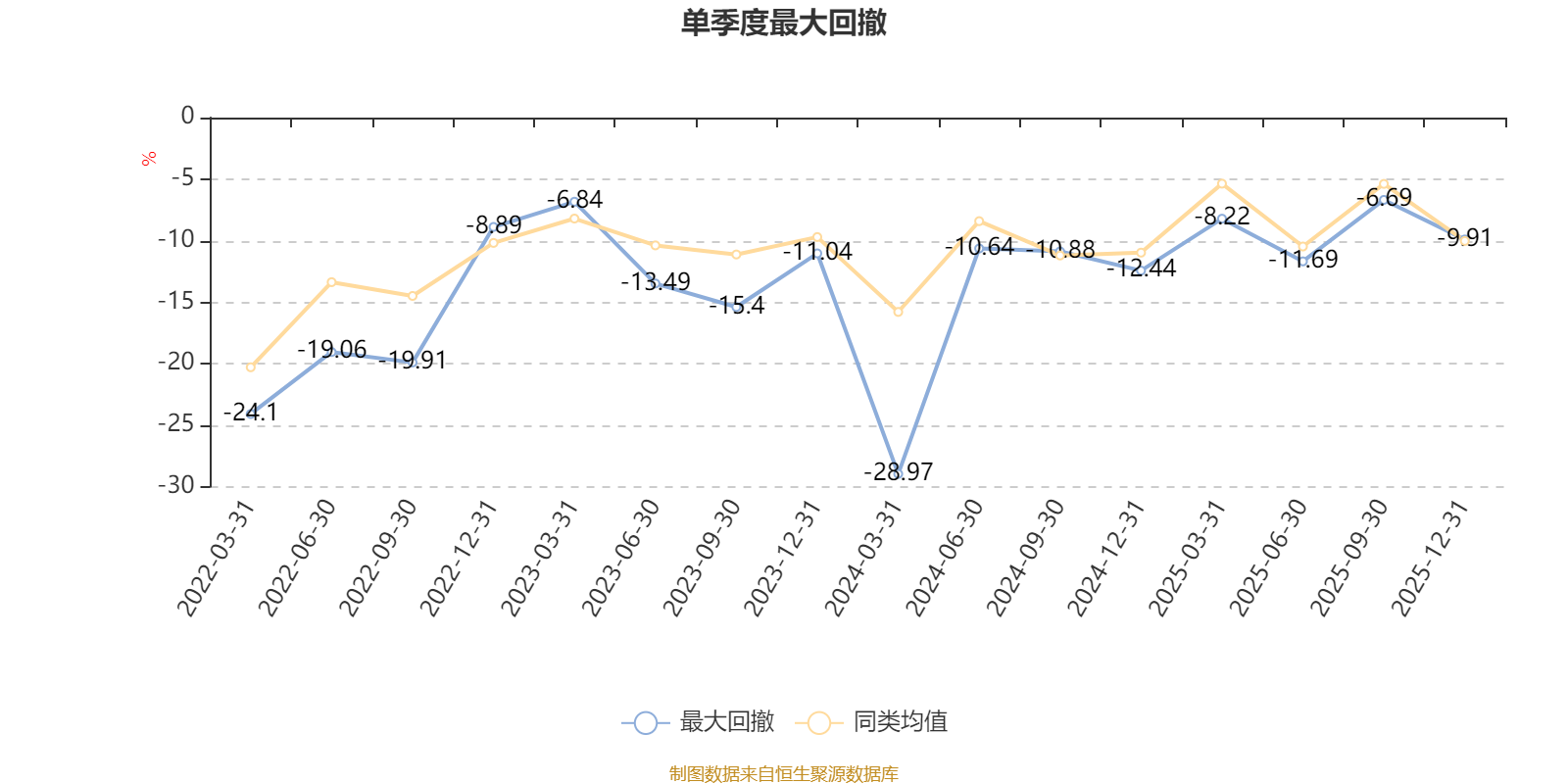 截至1月21日,基金近三年最大回撤为38.8%,同类可比基金排名175/254。单季度最大回撤出现在2024年一季度,为28.97%。