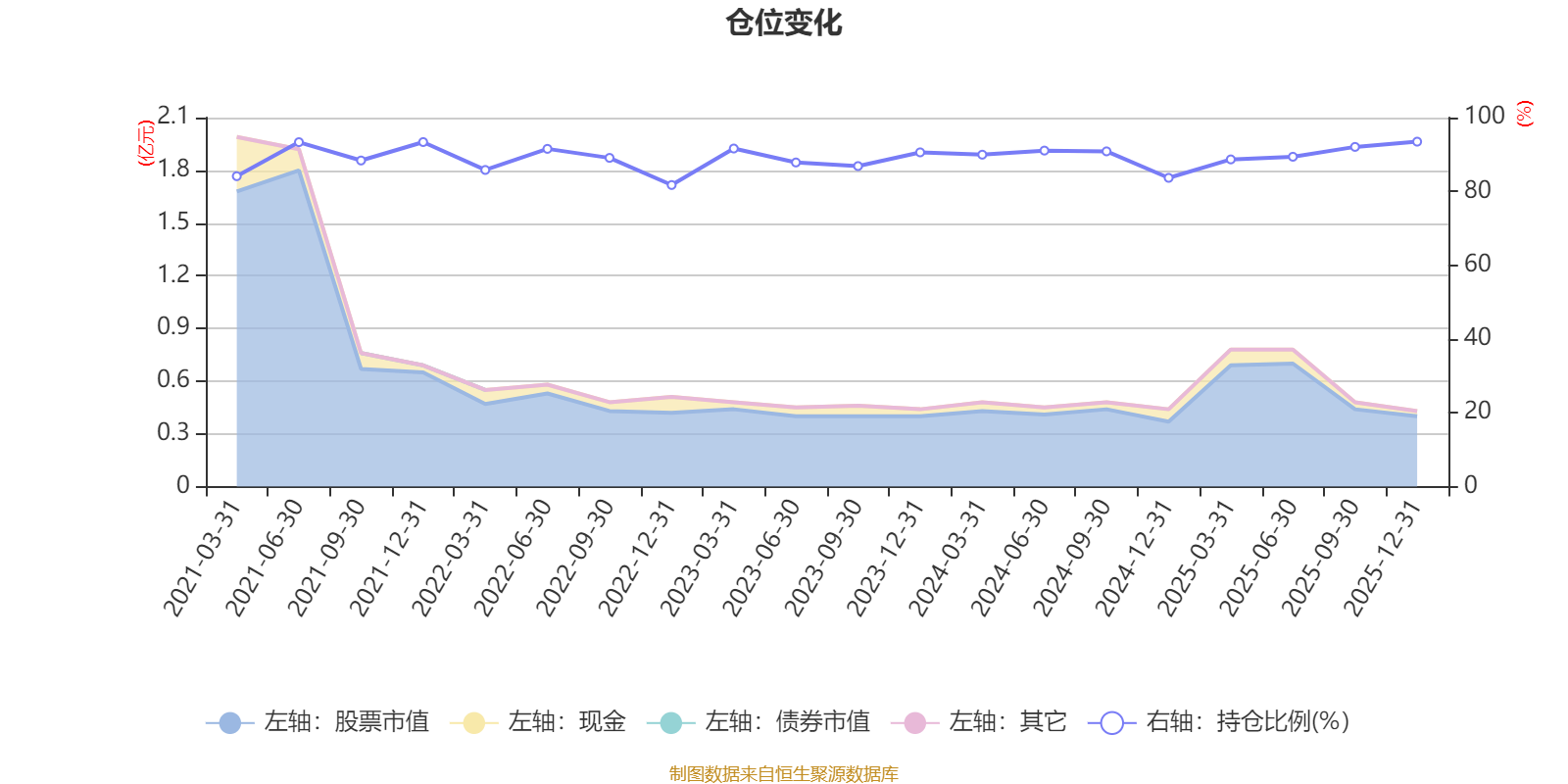 据定期报告数据统计,近三年平均股票仓位为89.67%,同类平均为84.04%。2025年末基金达到93.48%的最高仓位,2022年末最低,为81.73%。