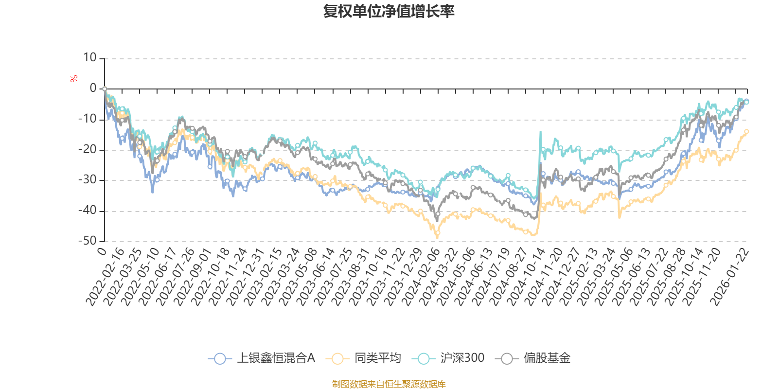 截至1月22日,上银鑫恒混合A近三个月复权单位净值增长率为13.06%,位于同类可比基金218/689;近半年复权单位净值增长率为31.96%,位于同类可比基金222/689;近一年复权单位净值增长率为37.07%,位于同类可比基金340/673;近三年复权单位净值增长率为27.44%,位于同类可比基金127/396。