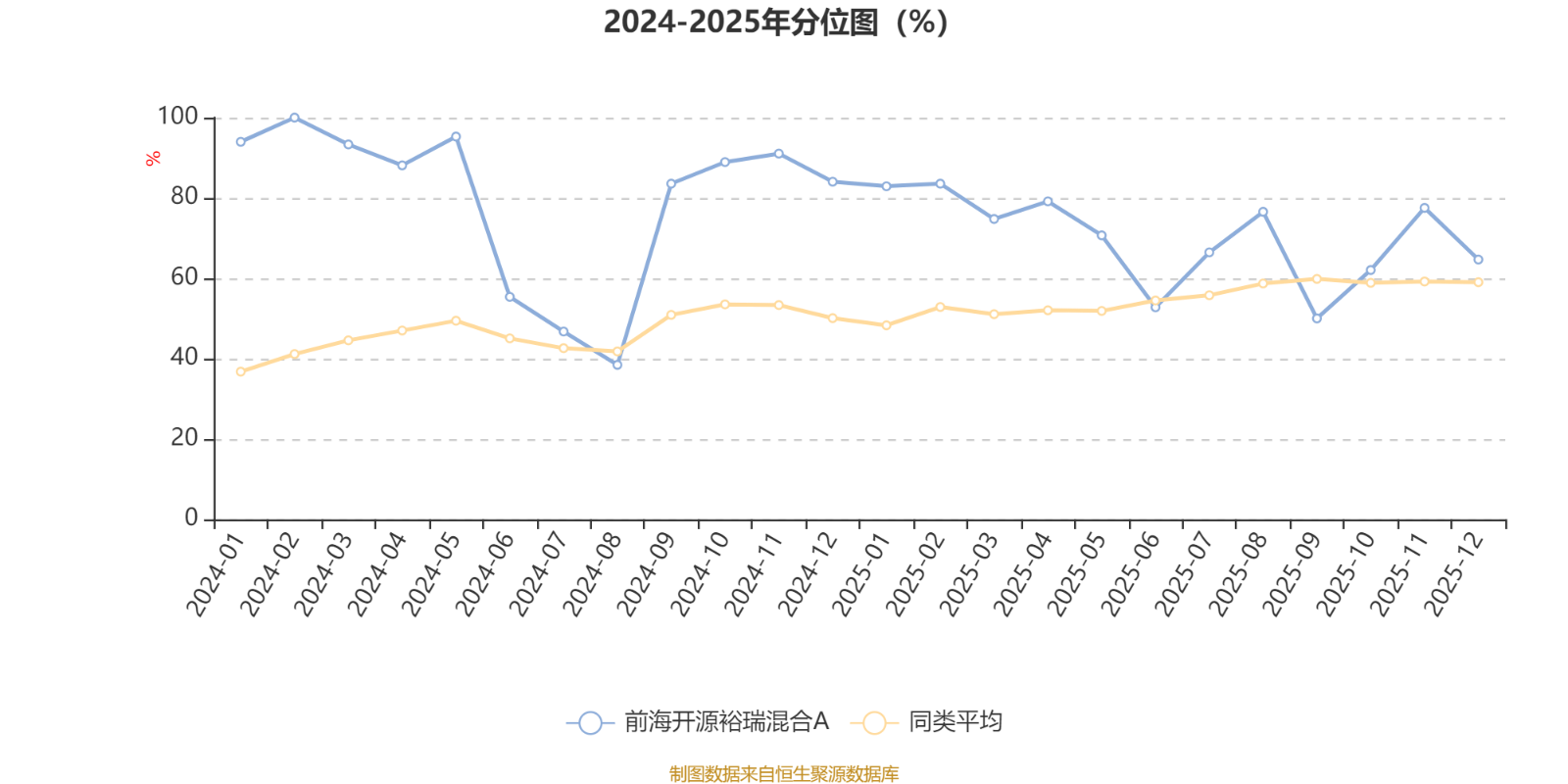 通过所选区间该基金净值增长率分位图,可以观察该基金与同类基金业绩比较情况。图为坐标原点到区间内某时点的净值增长率在同类基金中的分位数。