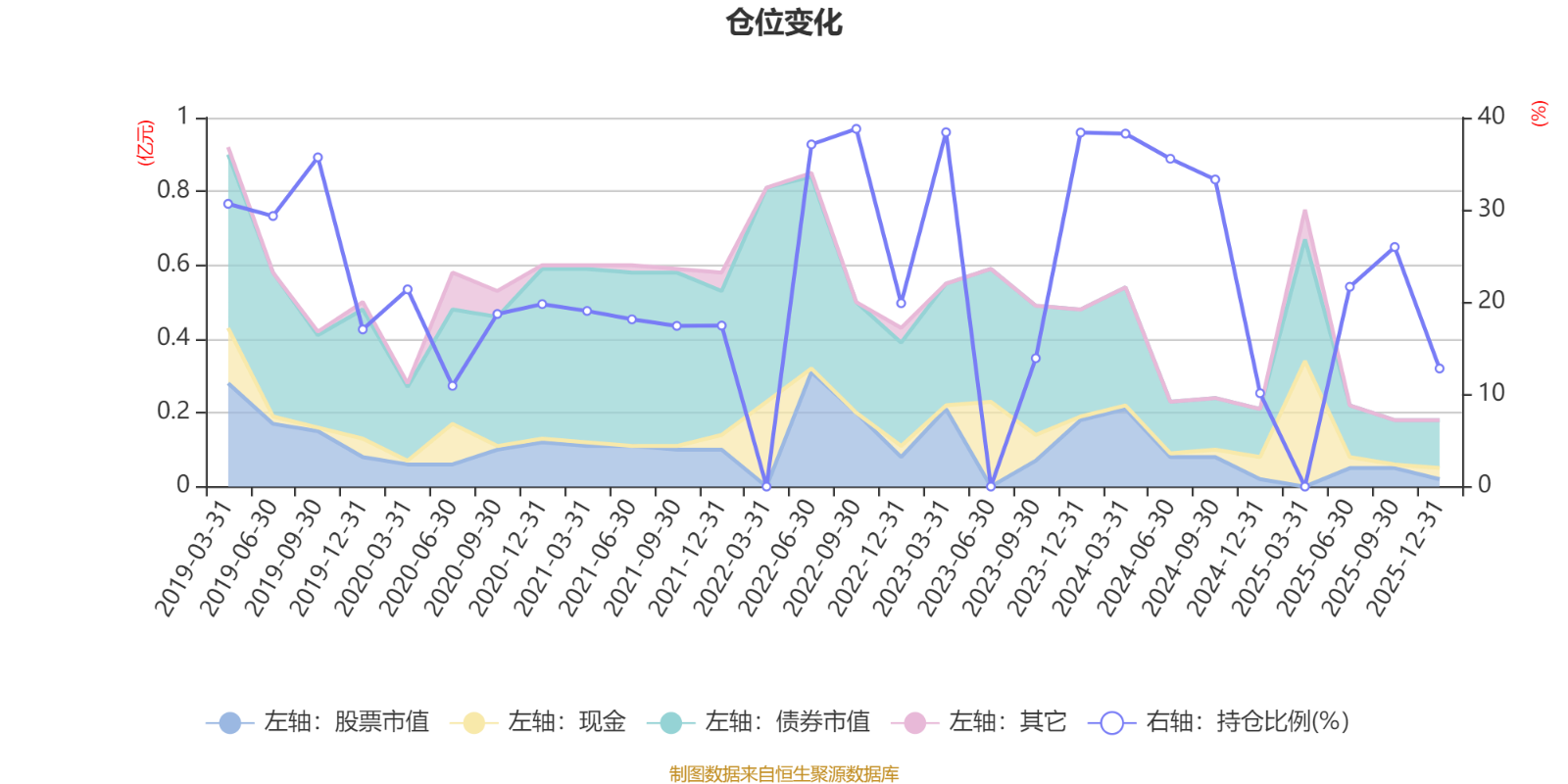 据定期报告数据统计,近三年平均股票仓位为22.36%,同类平均为19.2%。2022年三季度末基金达到38.78%的最高仓位,2024年末最低,为10.12%。