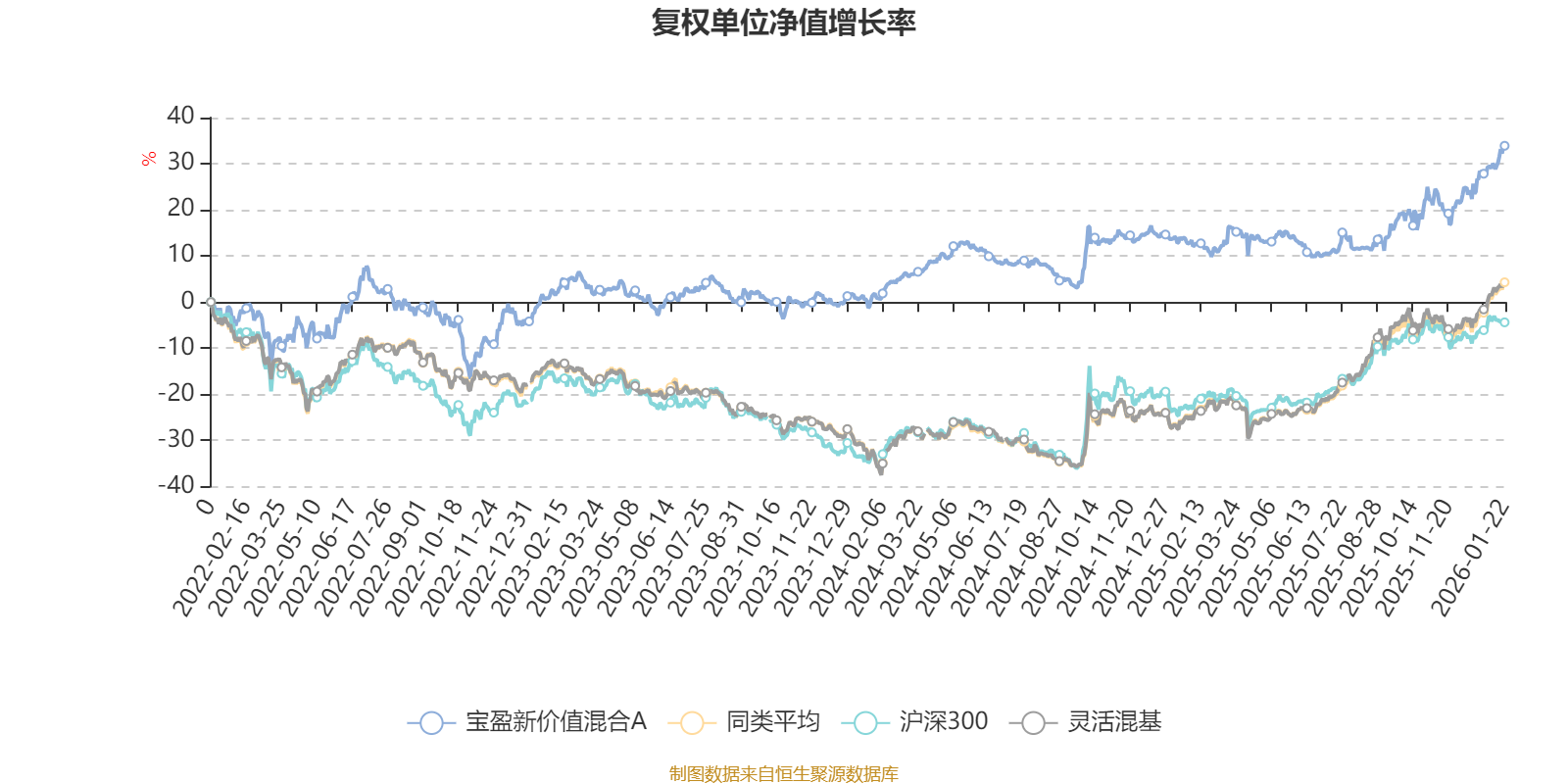 截至1月22日,宝盈新价值混合A近三个月复权单位净值增长率为12.70%,位于同类可比基金407/1286;近半年复权单位净值增长率为16.34%,位于同类可比基金781/1286;近一年复权单位净值增长率为18.84%,位于同类可比基金952/1286;近三年复权单位净值增长率为32.74%,位于同类可比基金349/1286。
