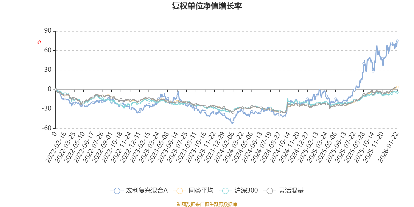 截至1月22日,宏利复兴混合A近三个月复权单位净值增长率为21.83%,位于同类可比基金105/1286;近半年复权单位净值增长率为76.46%,位于同类可比基金17/1286;近一年复权单位净值增长率为87.81%,位于同类可比基金41/1286;近三年复权单位净值增长率为133.90%,位于同类可比基金13/1286。