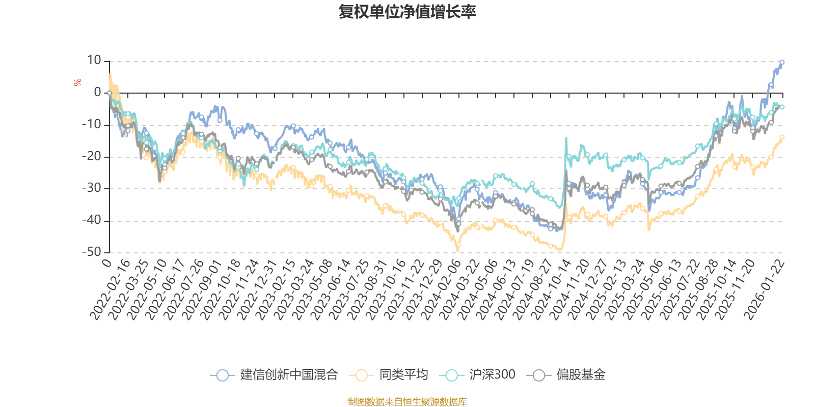 截至1月22日,建信创新中国混合近三个月复权单位净值增长率为20.76%,位于同类可比基金33/621;近半年复权单位净值增长率为49.28%,位于同类可比基金58/621;近一年复权单位净值增长率为60.07%,位于同类可比基金112/613;近三年复权单位净值增长率为23.81%,位于同类可比基金216/535。