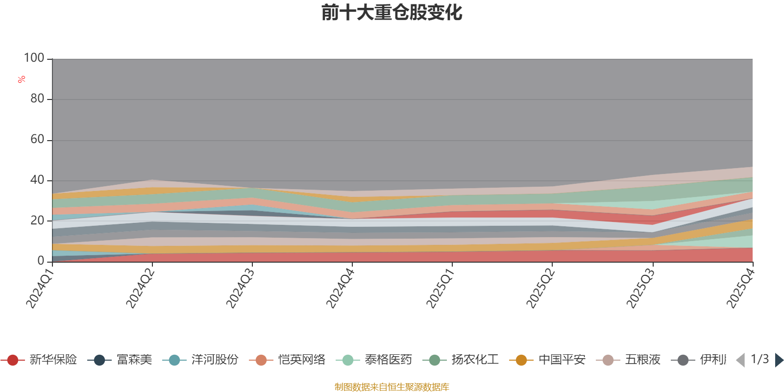 截至2025年四季度末,基金十大重仓股分别是宁德时代、新华保险、泰格医药、兆易创新、中国平安、美的集团、扬农化工、云南白药、伊利股份、贵州茅台。