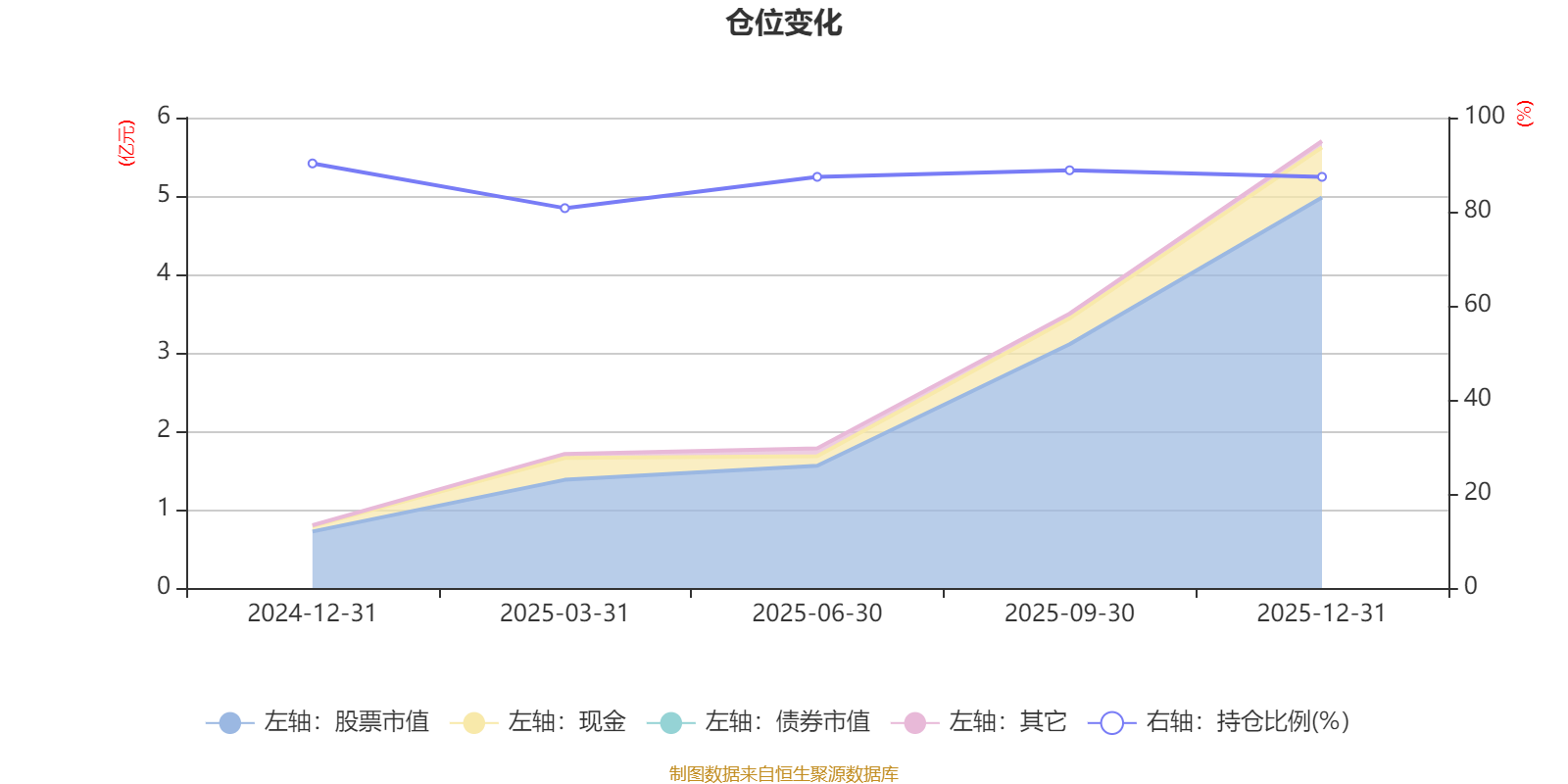 据定期报告数据统计,成立以来平均股票仓位为86.92%,同类平均为84.04%。2024年末基金达到90.26%的最高仓位,2025年一季度末最低,为80.75%。