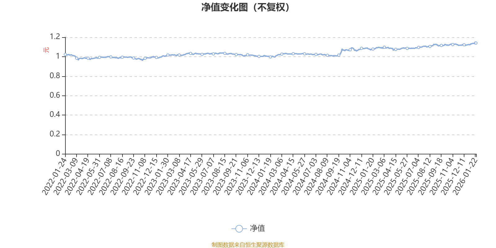 该基金属于偏债混合型基金。截至1月22日,单位净值为1.14元。基金经理是徐觅,目前管理的8只基金近一年均为正收益。其中,截至1月22日,东方红民享甄选一年持有混合近一年复权单位净值增长率最高,达8.96%;截至1月21日,东方红益鑫纯债债券A最低,为1.61%。