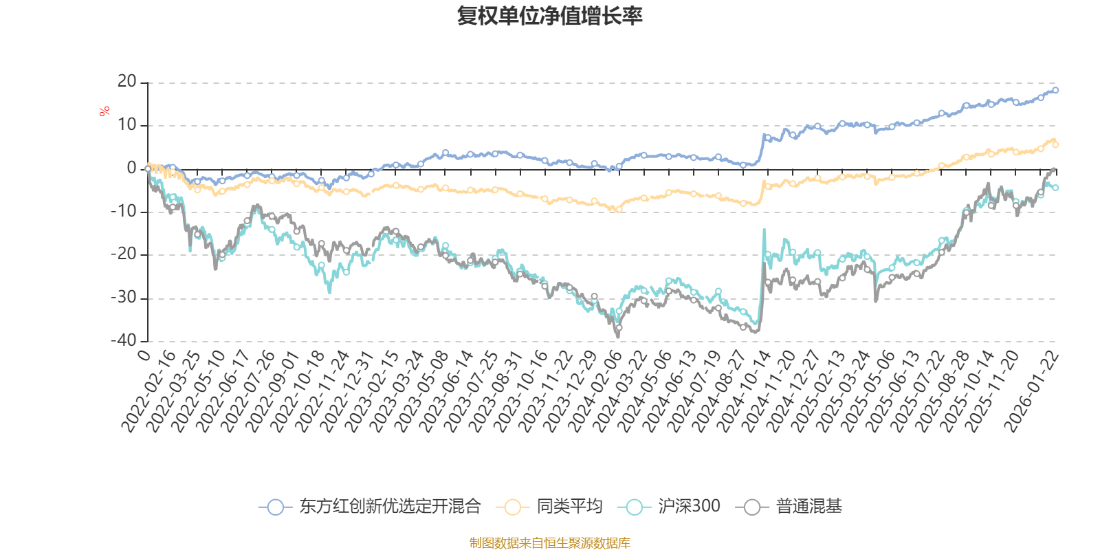 截至1月22日,东方红创新优选定开混合近三个月复权单位净值增长率为2.76%,位于同类可比基金216/629;近半年复权单位净值增长率为4.72%,位于同类可比基金277/629;近一年复权单位净值增长率为8.65%,位于同类可比基金263/626;近三年复权单位净值增长率为17.36%,位于同类可比基金132/564。