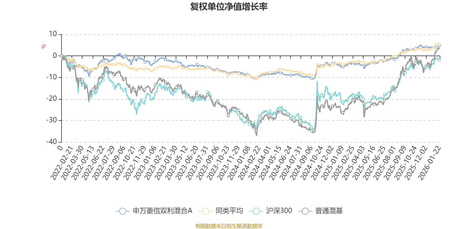 截至1月22日,申万菱信双利混合A近三个月复权单位净值增长率为1.43%,位于同类可比基金433/629;近半年复权单位净值增长率为6.05%,位于同类可比基金199/629;近一年复权单位净值增长率为9.35%,位于同类可比基金237/626;近三年复权单位净值增长率为6.24%,位于同类可比基金444/564。