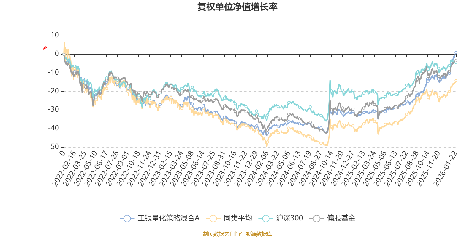 截至1月22日,工银量化策略混合A近三个月复权单位净值增长率为17.09%,位于同类可比基金76/621;近半年复权单位净值增长率为34.96%,位于同类可比基金167/621;近一年复权单位净值增长率为50.64%,位于同类可比基金189/613;近三年复权单位净值增长率为29.59%,位于同类可比基金173/535。