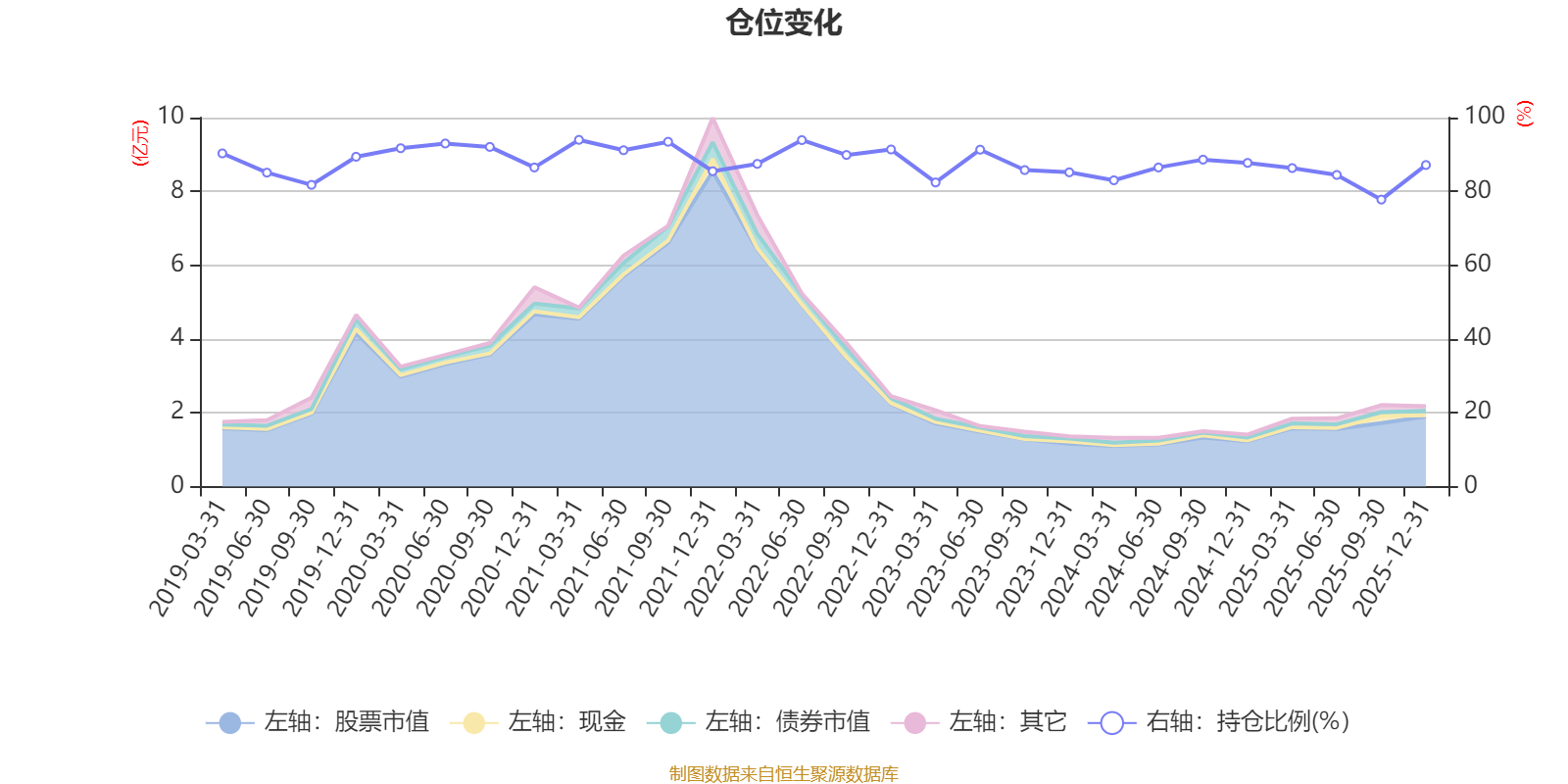 据定期报告数据统计,近三年平均股票仓位为85.52%,同类平均为85.83%。2021年一季度末基金达到93.97%的最高仓位,2025年三季度末最低,为77.78%。