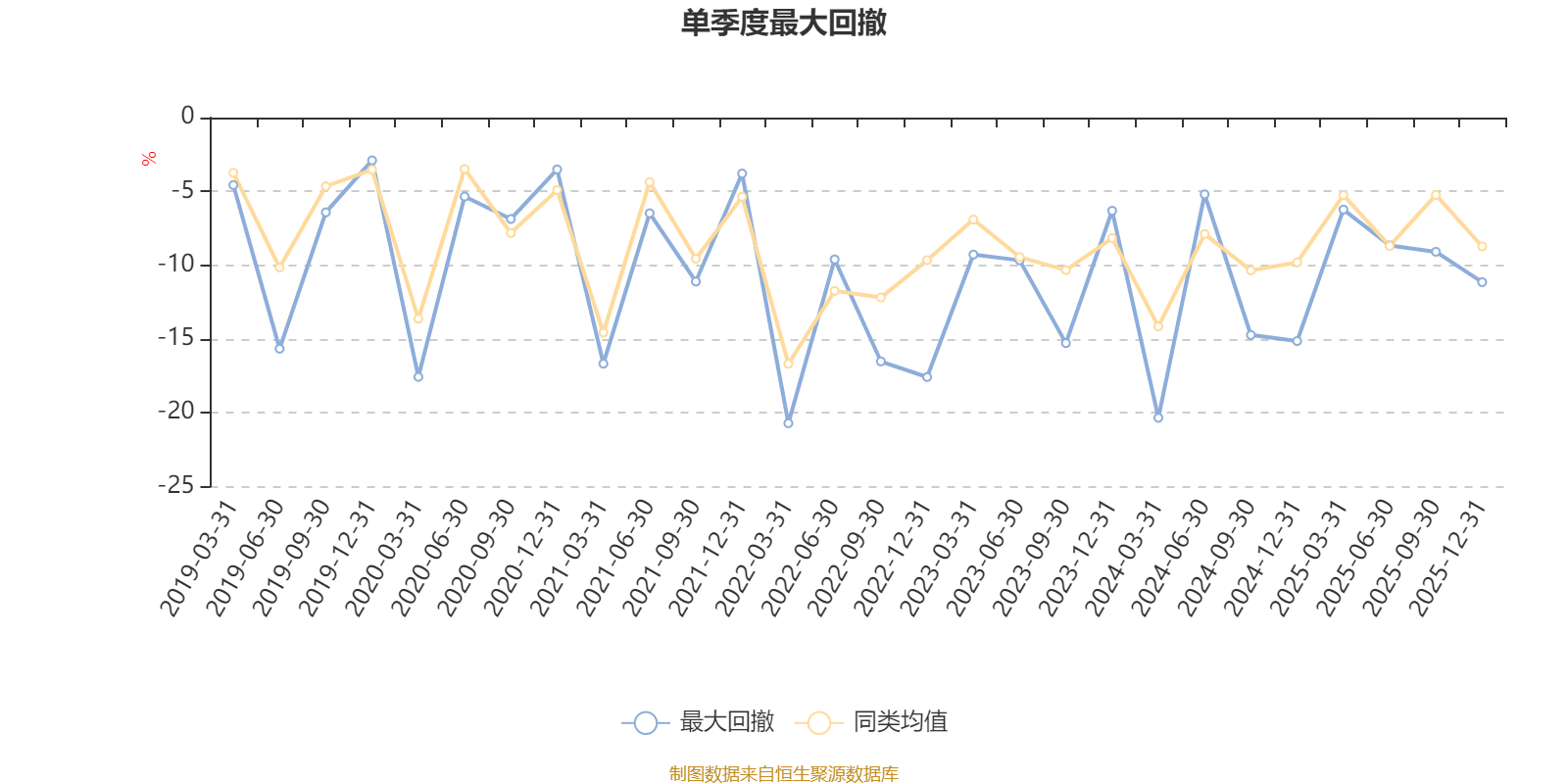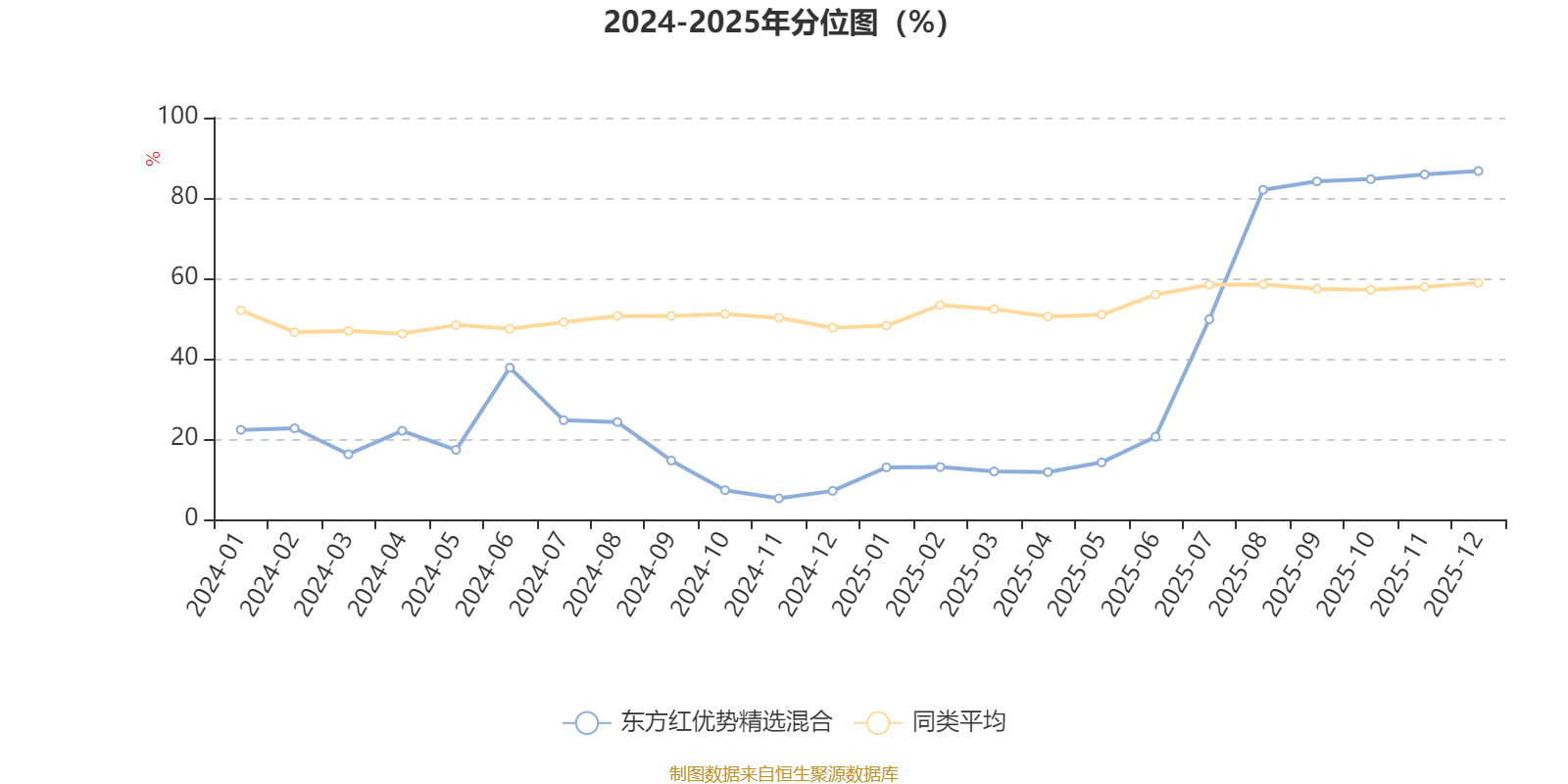 通过所选区间该基金净值增长率分位图,可以观察该基金与同类基金业绩比较情况。图为坐标原点到区间内某时点的净值增长率在同类基金中的分位数。