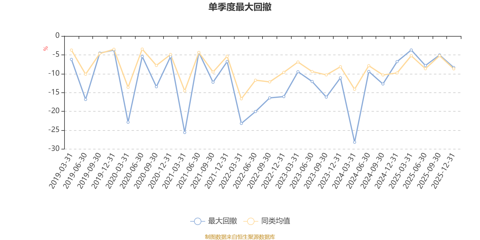 截至1月22日,基金近三年最大回撤为44.77%,同类可比基金排名1078/1264。单季度最大回撤出现在2024年一季度,为28.21%。