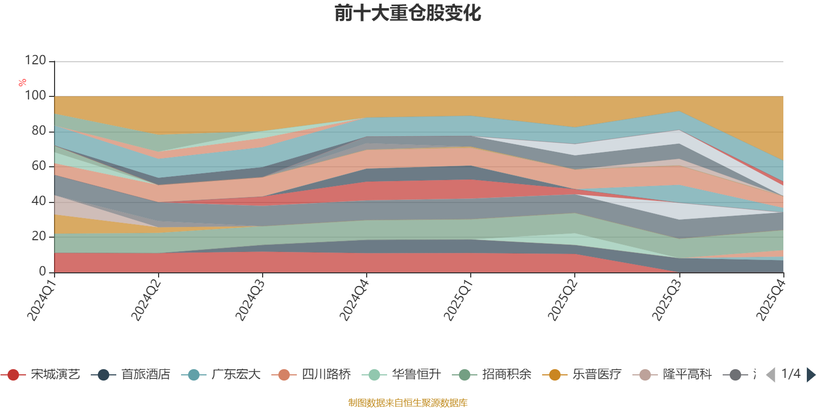 该基金持股集中度较高,近2年前十大重仓股集中度长期超过60%。截至2025年四季度末,基金十大重仓股分别是晨光股份、招商积余、北京人力、首旅酒店、顾家家居、中国汽研、四川路桥、海康威视、金域医学、广东宏大。