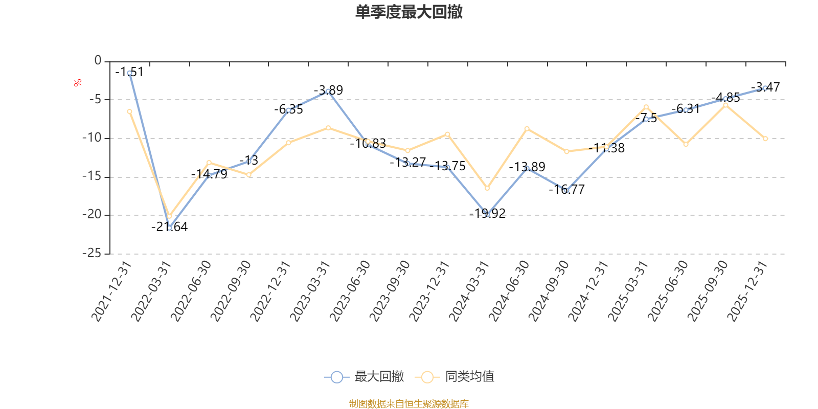 截至1月21日,基金近三年最大回撤为49.41%,同类可比基金排名500/526。单季度最大回撤出现在2022年一季度,为21.64%。