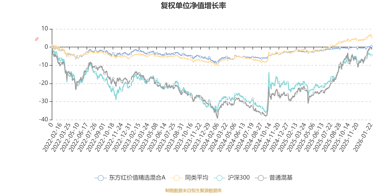 截至1月22日,东方红价值精选混合A近三个月复权单位净值增长率为0.78%,位于同类可比基金517/629;近半年复权单位净值增长率为1.34%,位于同类可比基金559/629;近一年复权单位净值增长率为2.95%,位于同类可比基金575/626;近三年复权单位净值增长率为1.89%,位于同类可比基金512/564。