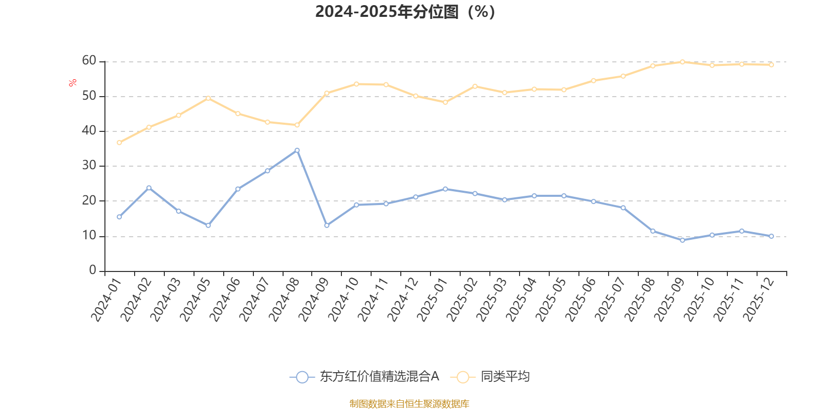 通过所选区间该基金净值增长率分位图,可以观察该基金与同类基金业绩比较情况。图为坐标原点到区间内某时点的净值增长率在同类基金中的分位数。