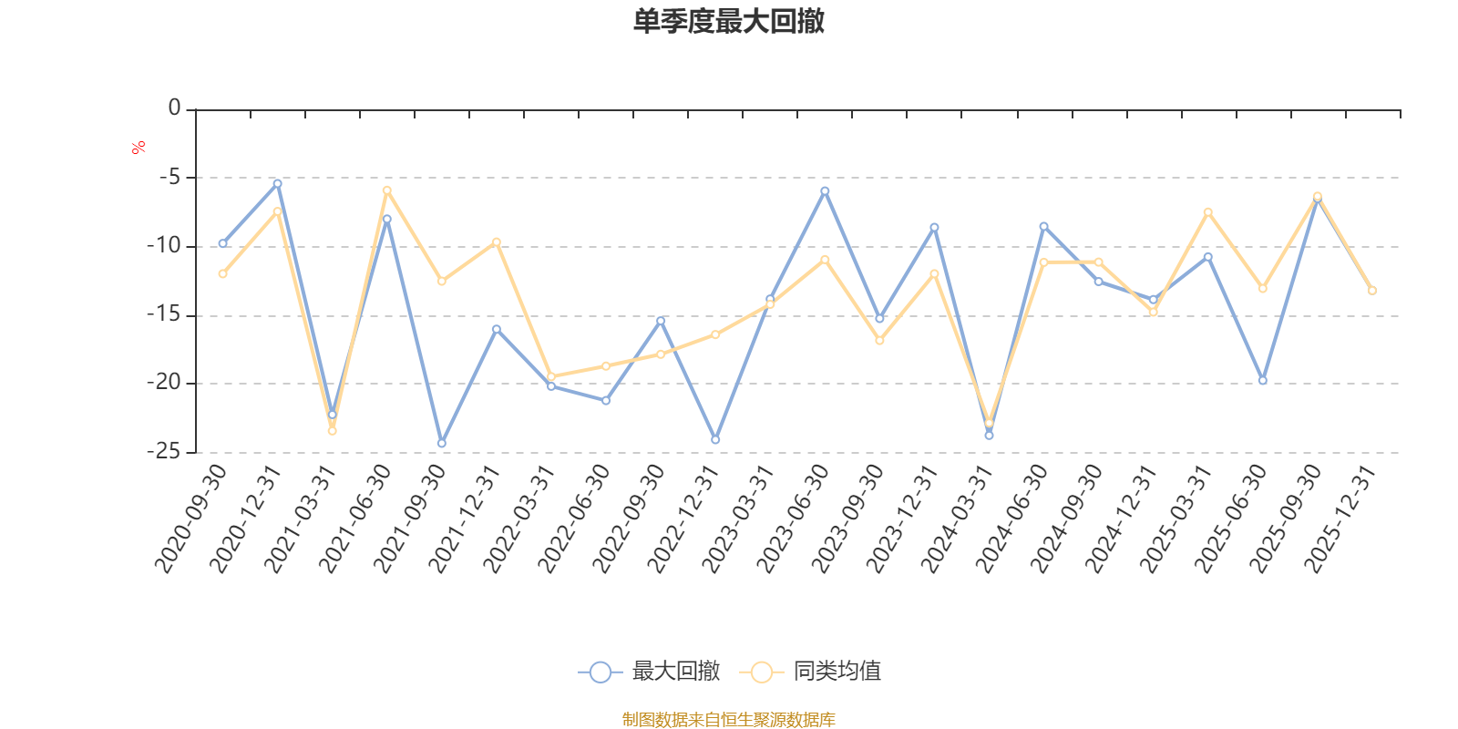 通过所选区间该基金净值增长率分位图,可以观察该基金与同类基金业绩比较情况。图为坐标原点到区间内某时点的净值增长率在同类基金中的分位数。