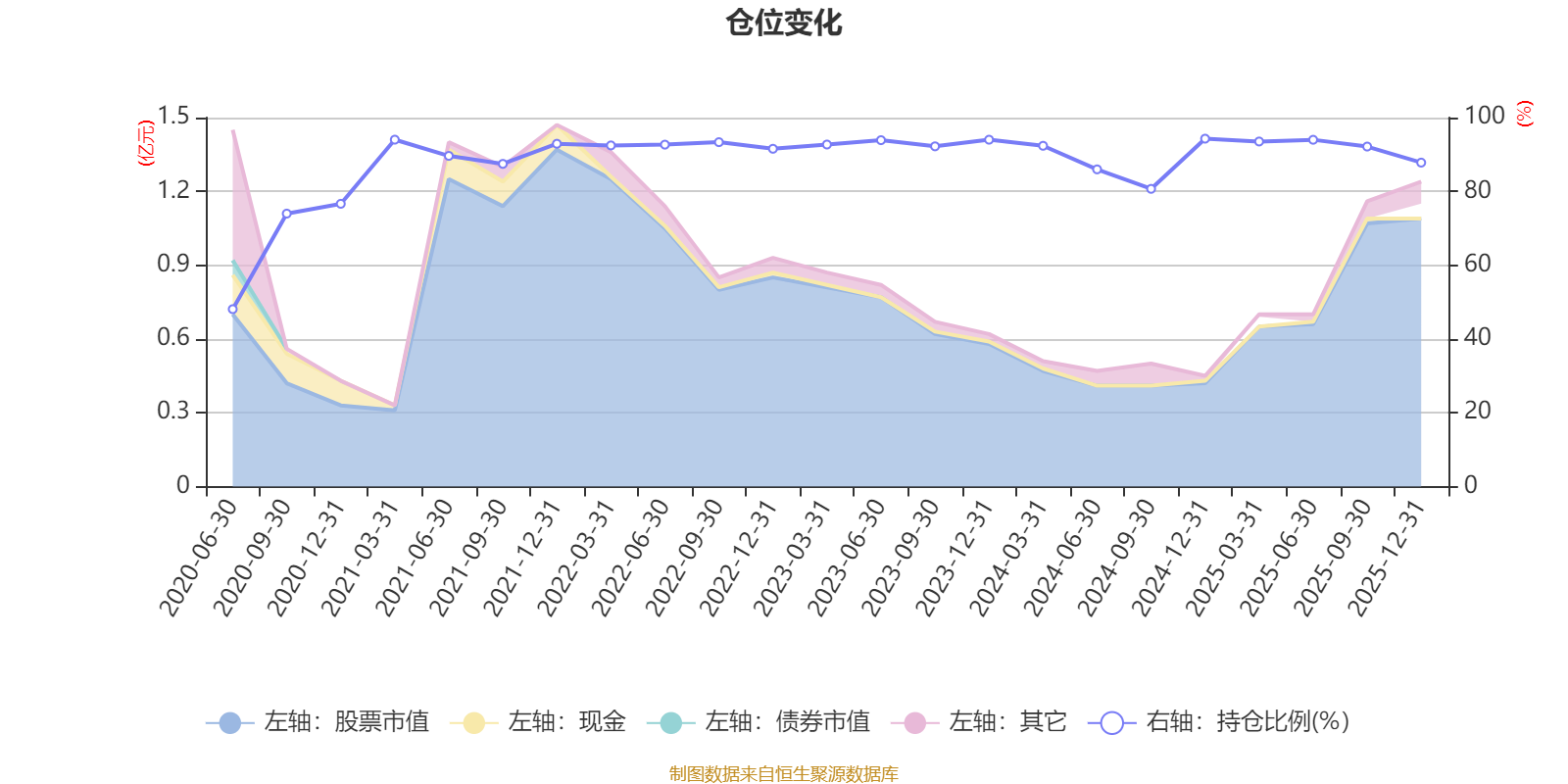 据定期报告数据统计,近三年平均股票仓位为91.13%,同类平均为87.15%。2024年末基金达到94.29%的最高仓位,2020年上半年末最低,为48.08%。